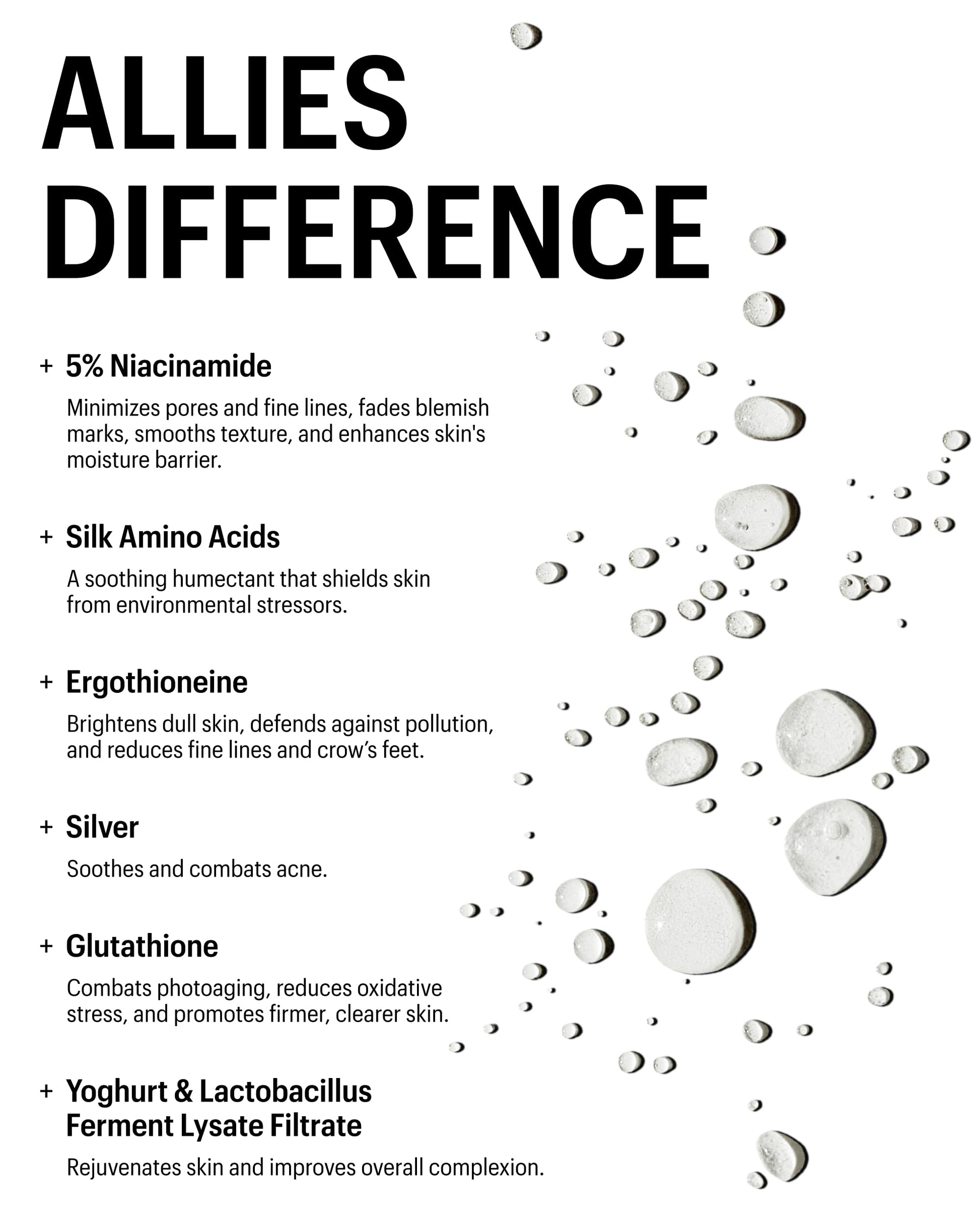 - THE ALLIES PROMISE. Formulated without any fillers or potential irritants that may compromise your skin. All our products are silicone, sulfate, and phthalate-free, cruelty-free, and dermatologist-tested — 30-day satisfaction guarantee.