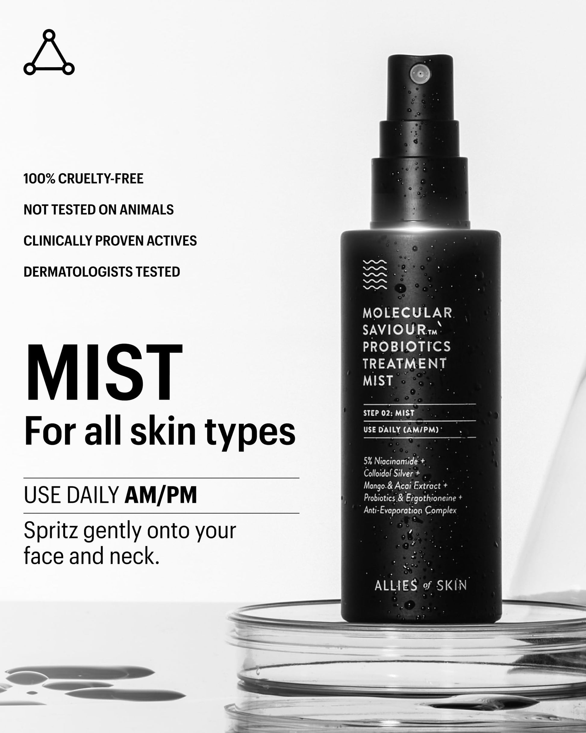 Allies of Skin Molecular Saviour Treatment Mist: Niacinamide, Glutathione. Face Spray for Hydration and Antioxidant Protection. Counteracts Jetlag and Fatigue 1.7 oz / 50 ml