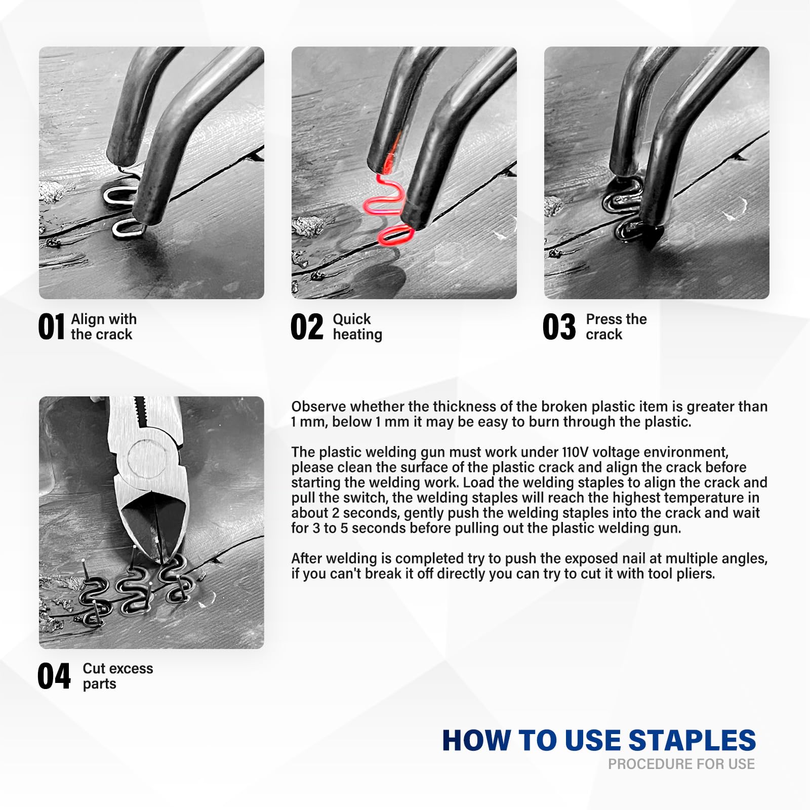 - Versatile Repair Tool:The Plastic Welding Kit fix car bumpers,dashboards,lamp holders,plastic rings, radiators, and more with ease and Various plastic products DIY