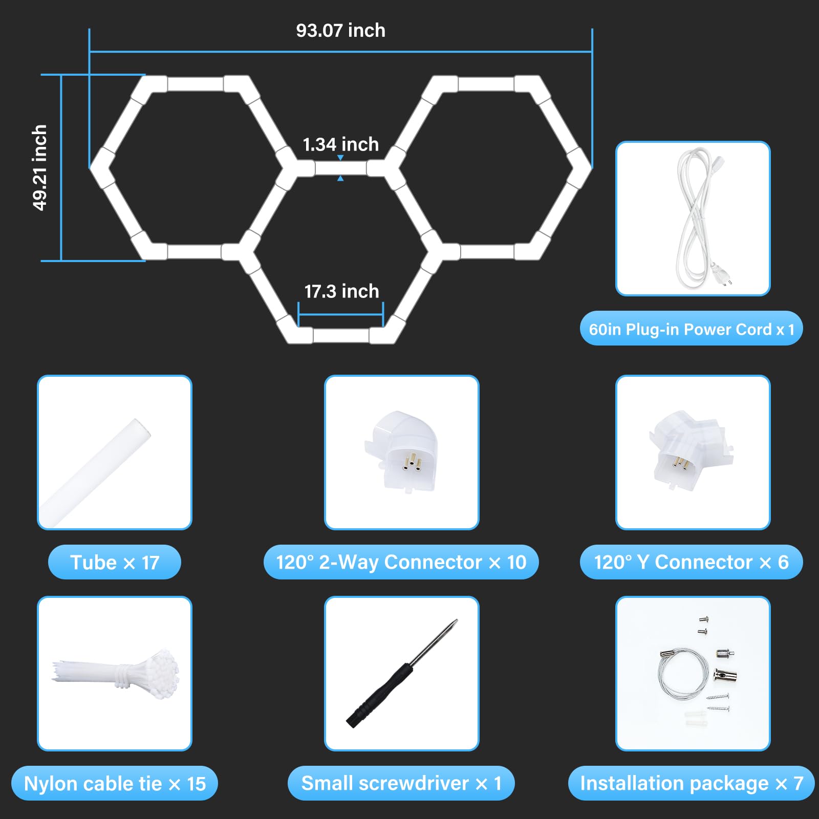 - 【DIY Combination】With different connectors, all light tubes can be freely combined to create unique and cool light shapes. Each light tube and connector is plug-and-play to fit different areas and shapes. You can purchase multiple kits to combine lights for a larger area