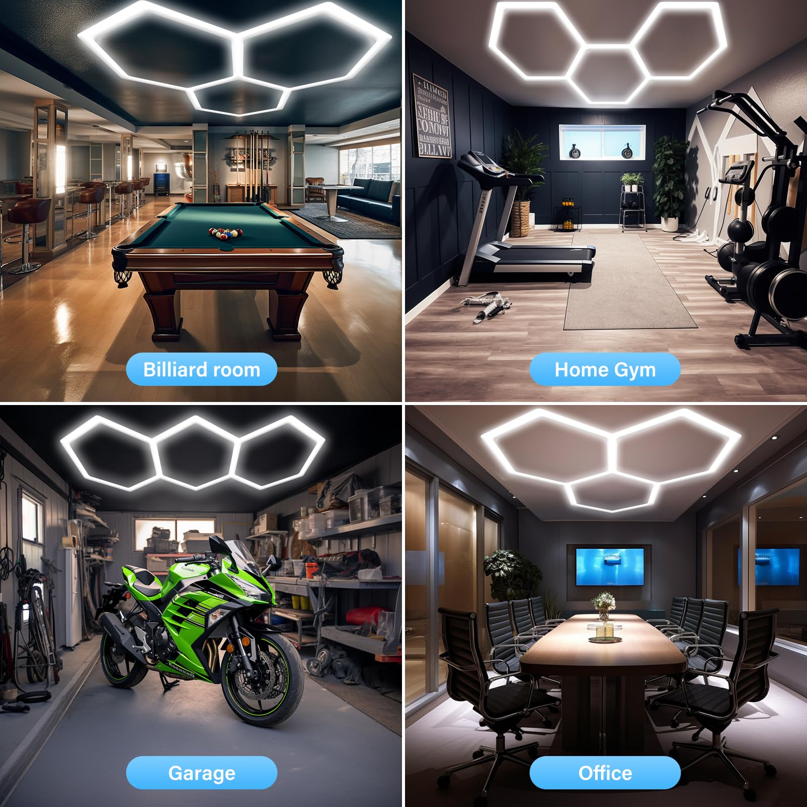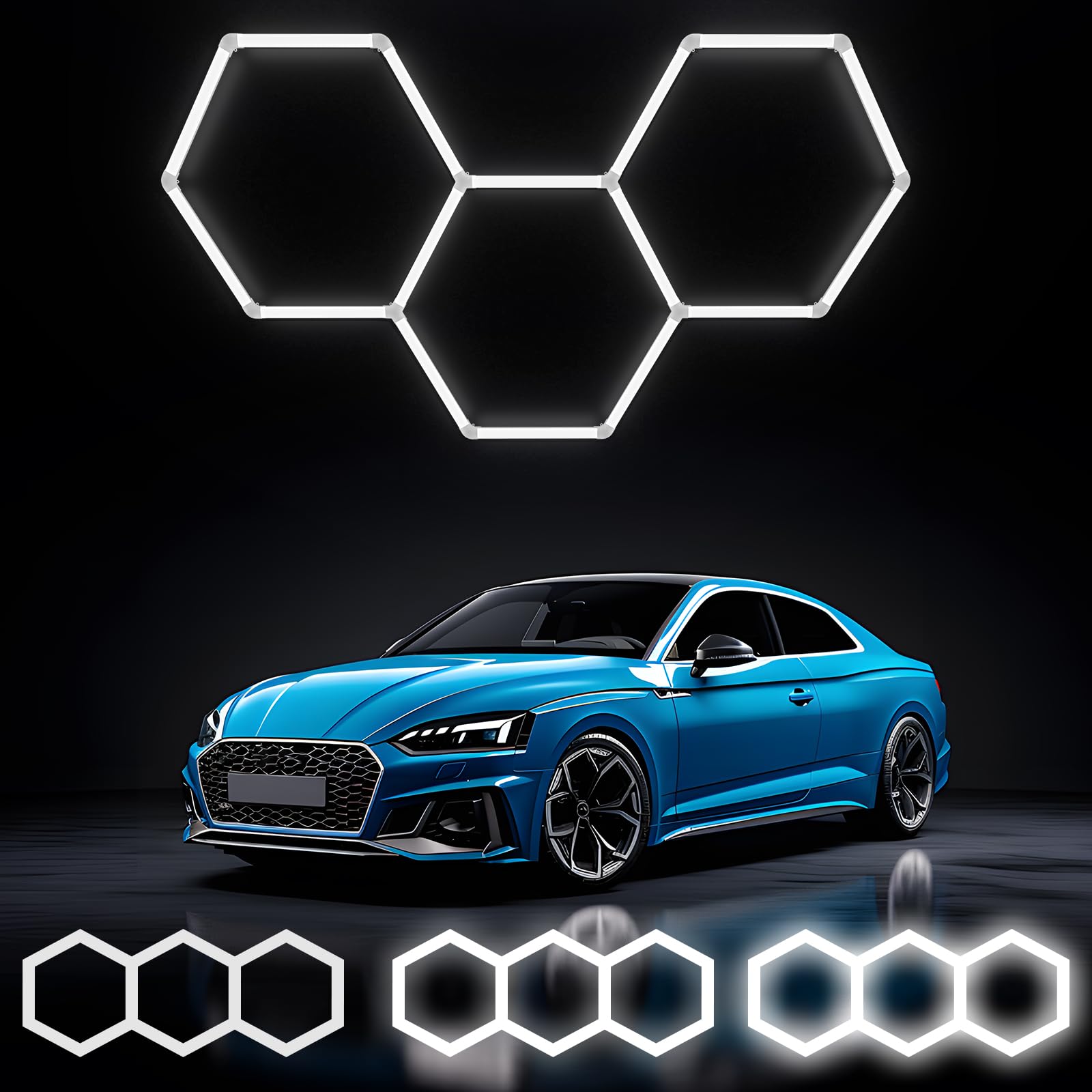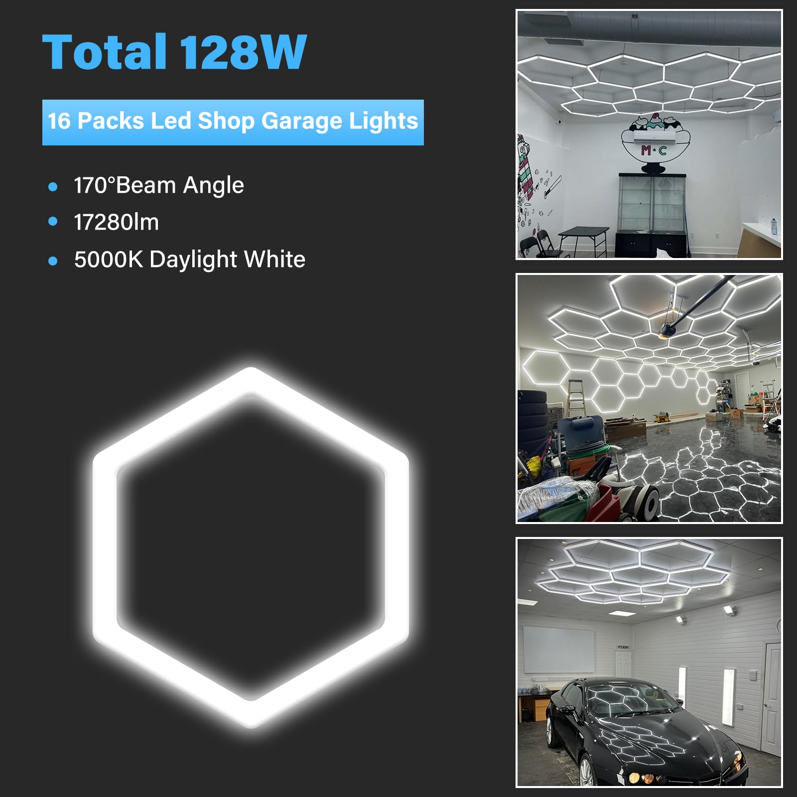 ALLYES KX Hexagon LED Garage Light, Dimmable Hex Shop Lights 6500K 17280LM 128W, Brightness Adjustable Led Ceiling Lights for Shop Garage Gym Workshop Basement