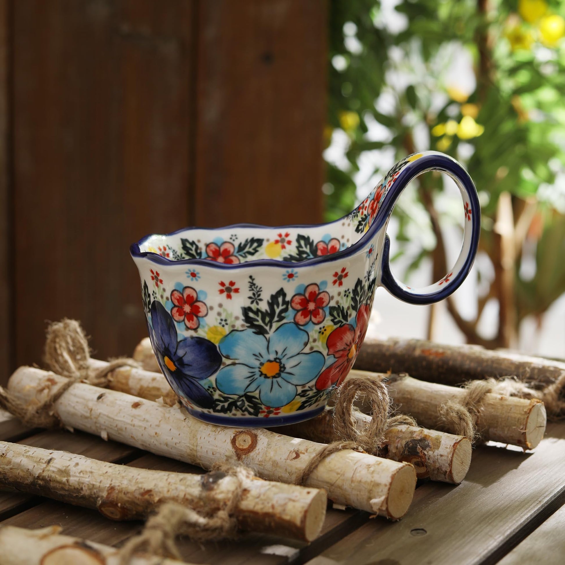ALMA 18oz Microwavable Soup Bowl with Loop Handle, Handpainted Decorative Mug Big Handle, Ceramic Soup bowl for Mother, Cereal Bowl Great for Fruits, Chili, Stew, Ice cream