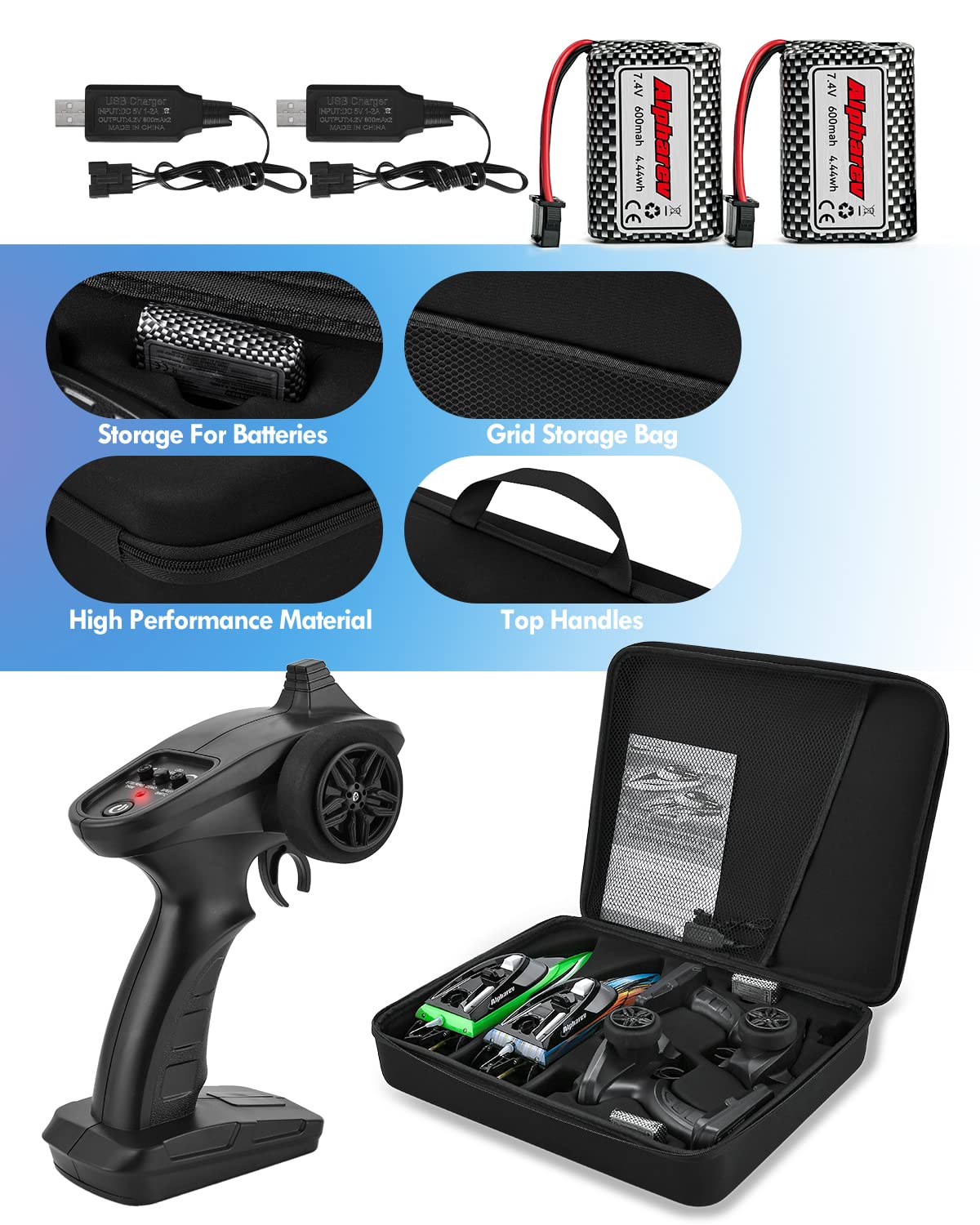 - RC Boat with Storage Case: AlphaRev specially designed a storage bag for the remote control boat. The sturdy materials and large storage space make the rc boat more convenient to carry.