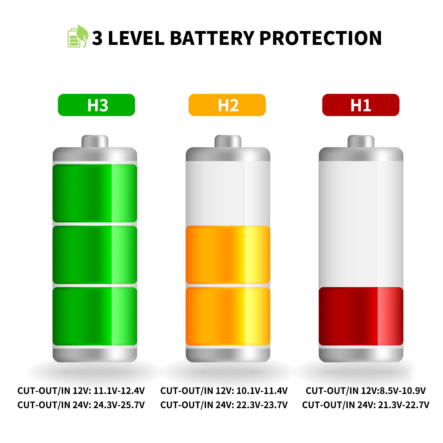 - CAR BATTERY PROTECTION:With temperature memory function and 3 different levels for battery protection: Low(H1), Med(H2) and High(H3) to protect your vehicle battery without run down.
