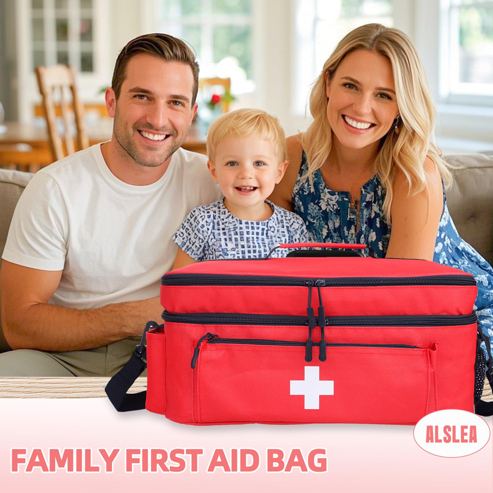 ALSLEA First Aid Bag Empty Large Medical Bag with Shoulder Strap 16”x 9½” x 7” Medicine Organizer Box Travel First Aid kit Emergency Supplies Storage Bag for Car, Home, Office, Outdoor (Red)