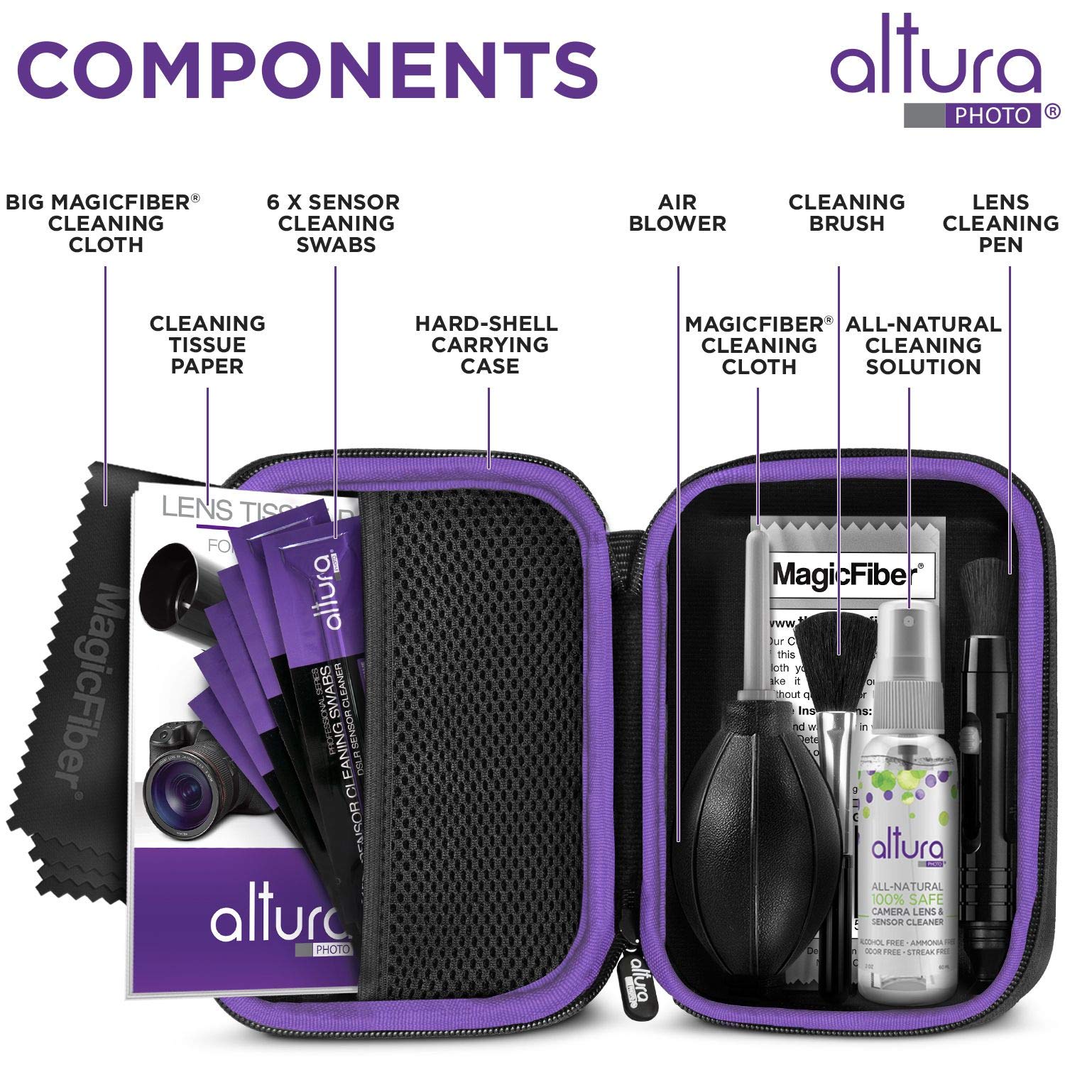 - FULL FRAME CAMERA CLEANER KIT INCLUDES: 6 Altura Photo 24mm Dry Sensor Swab + Altura Photo All-Natural 2oz. liquid lens cleaner + Hard Carrying Case + Lens Cleaning Pen + Lens Brush + Air Camera Blower + 50 Sheet Tissue Lens Paper + 1 Large and Original MagicFiber Microfiber camera lens cleaning cloth.