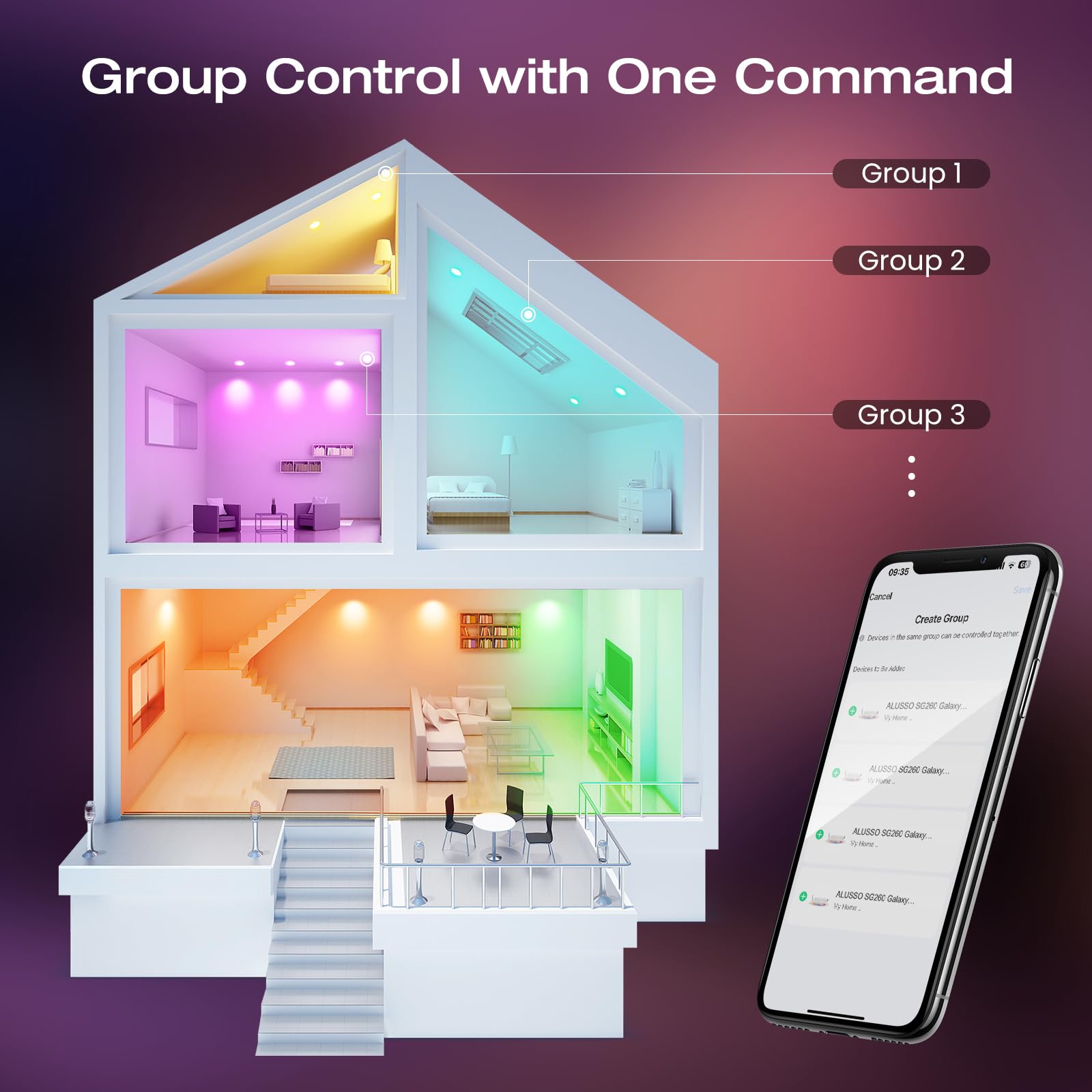 - 【All-In-One Group Control】Do you tired of adjusting every single smart can lights in your home? Our All-in-One Group Control feature allows you to easily set different groups, such as living room, gaming room, bedroom, soffit, and more. So you can control multiple lights at the same time, and has a variety of scene and atmosphere modes to choose from.