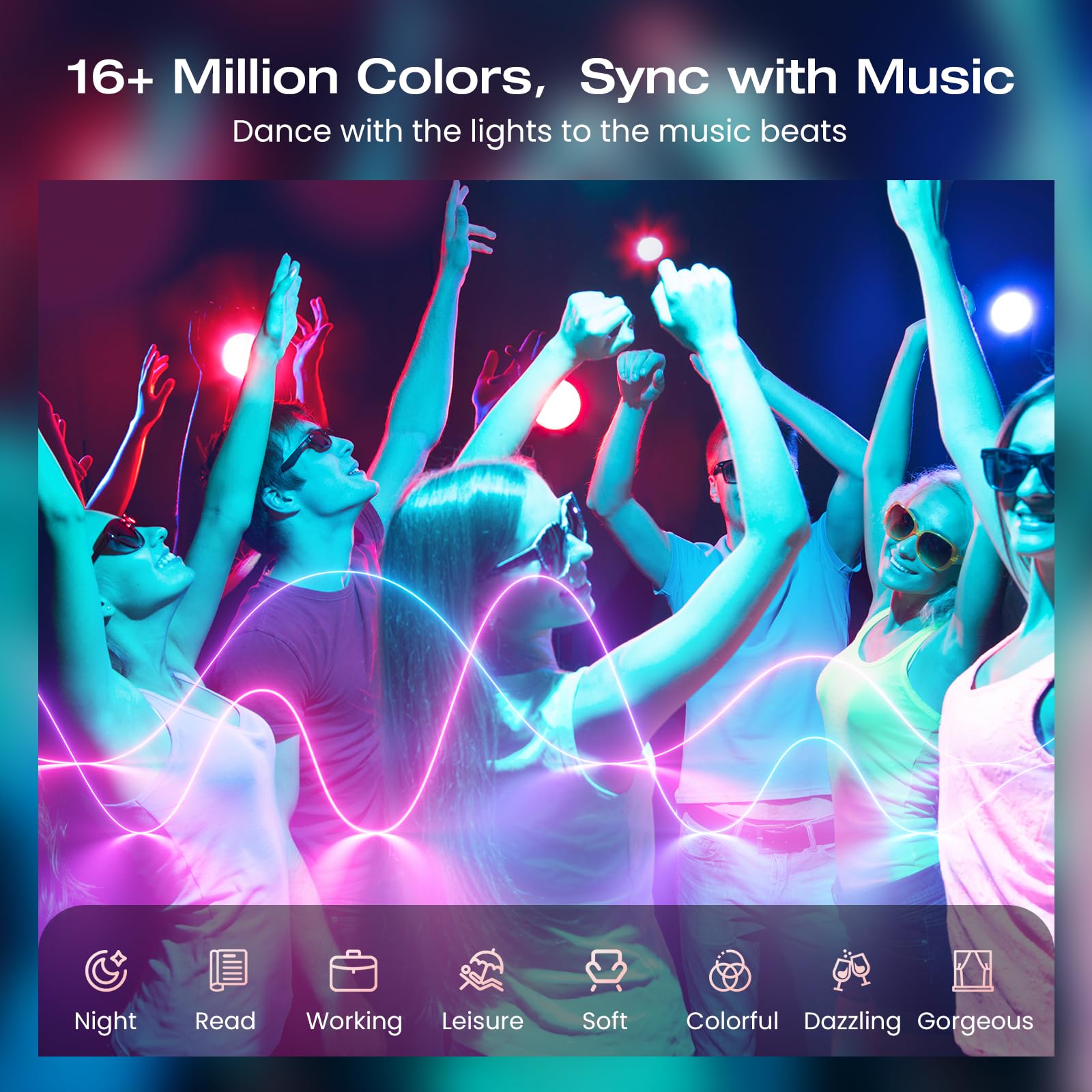 - 【Voice Control & Music Sync】Smart RGB can lights compatible with Alexa/Google Assistant, allows you to get hands-free control - Just tell them what to do! You can set the colors or modes of each light to match your favorite scene (as home theater, bathroom, yoga, etc.). Turn on music mode then lights will synchronize with the rhythm received by APP, to enjoy a ultimate real-time immersive audiovisual live experience.