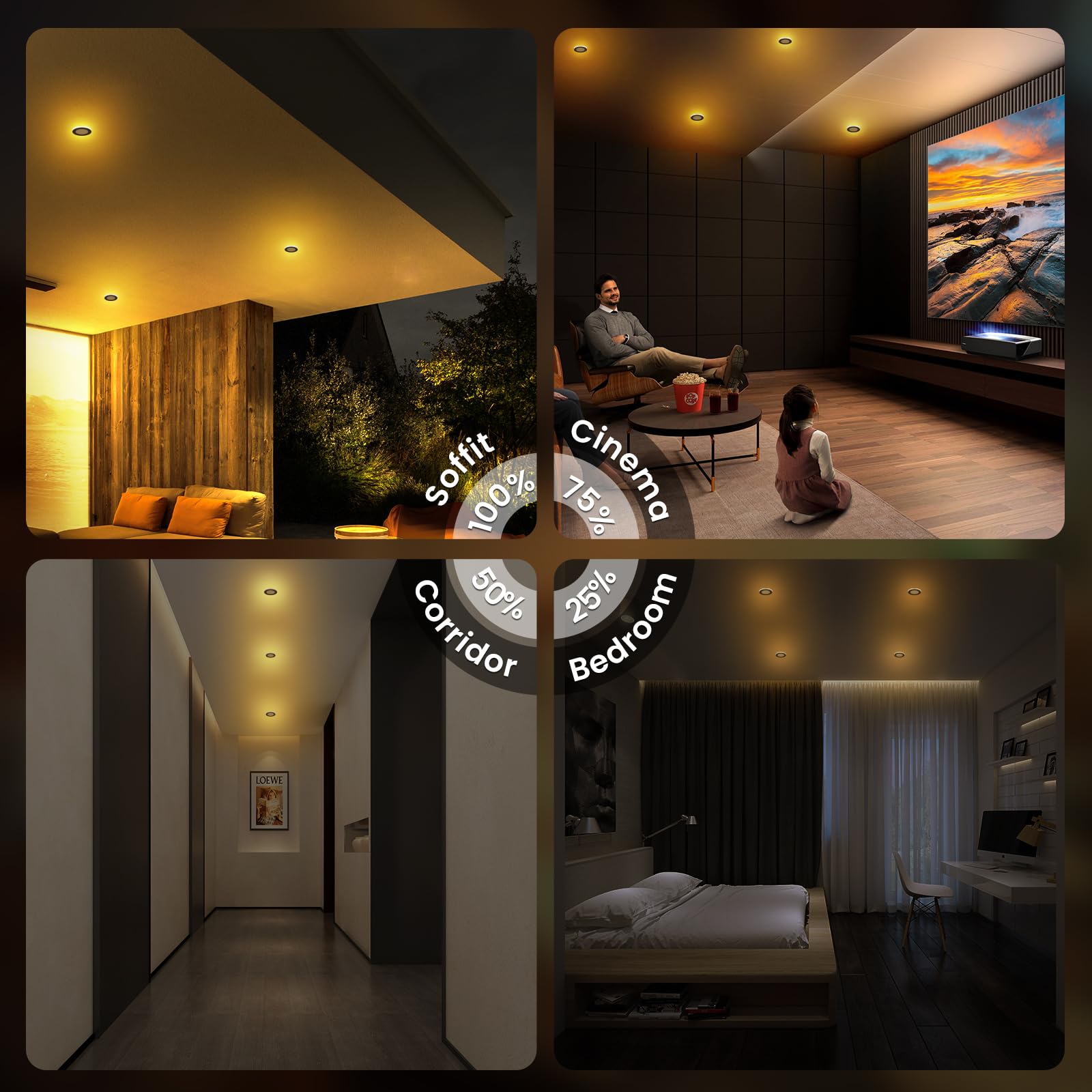 - 【Nightlight & 5CCT】ALUSSO LIGHTING 6 inch LED recessed lighting features nightlight mode emits 2000K amber light for soft illumination and add ambiance, also convenient for your night-sight when you wake up. With the option to choose from 2700K, 3000K, 3500K, 4000K, and 5000K color temperature, you can select the perfect one to match your preferences and needs. Note: The CCT can only be changed via the DIP switches on the J-box before installation.