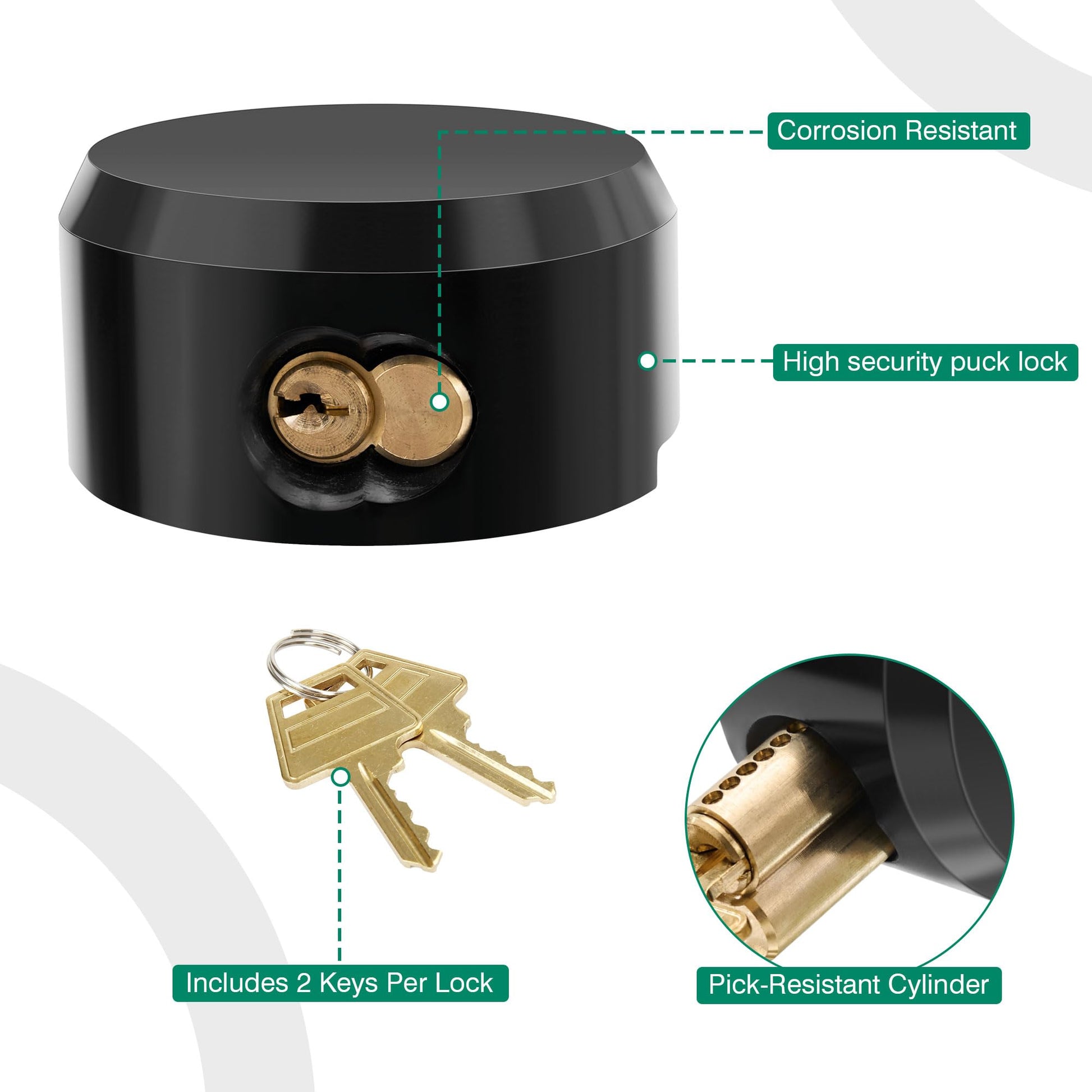 Alwapea 3 Pieces Hidden Puck Locks for Trailers, Hidden Shackle Padlocks Keyed Alike Trailer Puck Padlocks with Enlarged Lock for Vans, Black