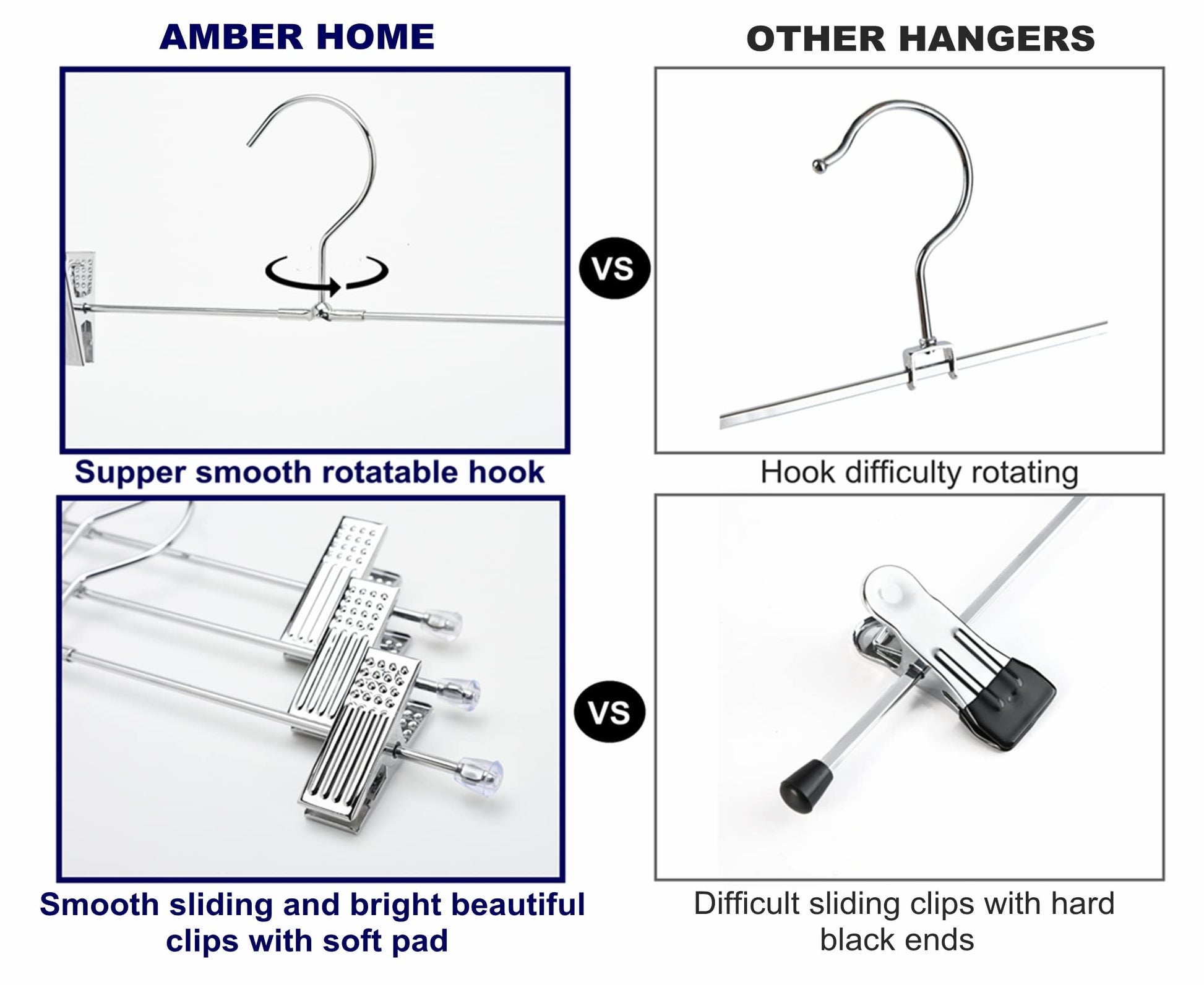 Amber Home 50 Pack Metal Pants Hangers with Clips, Heavy Duty Metal Skirt Hangers with 2-Adjustable Clips, Bottom Hangers for Shorts, Jeans, Trousers (50)