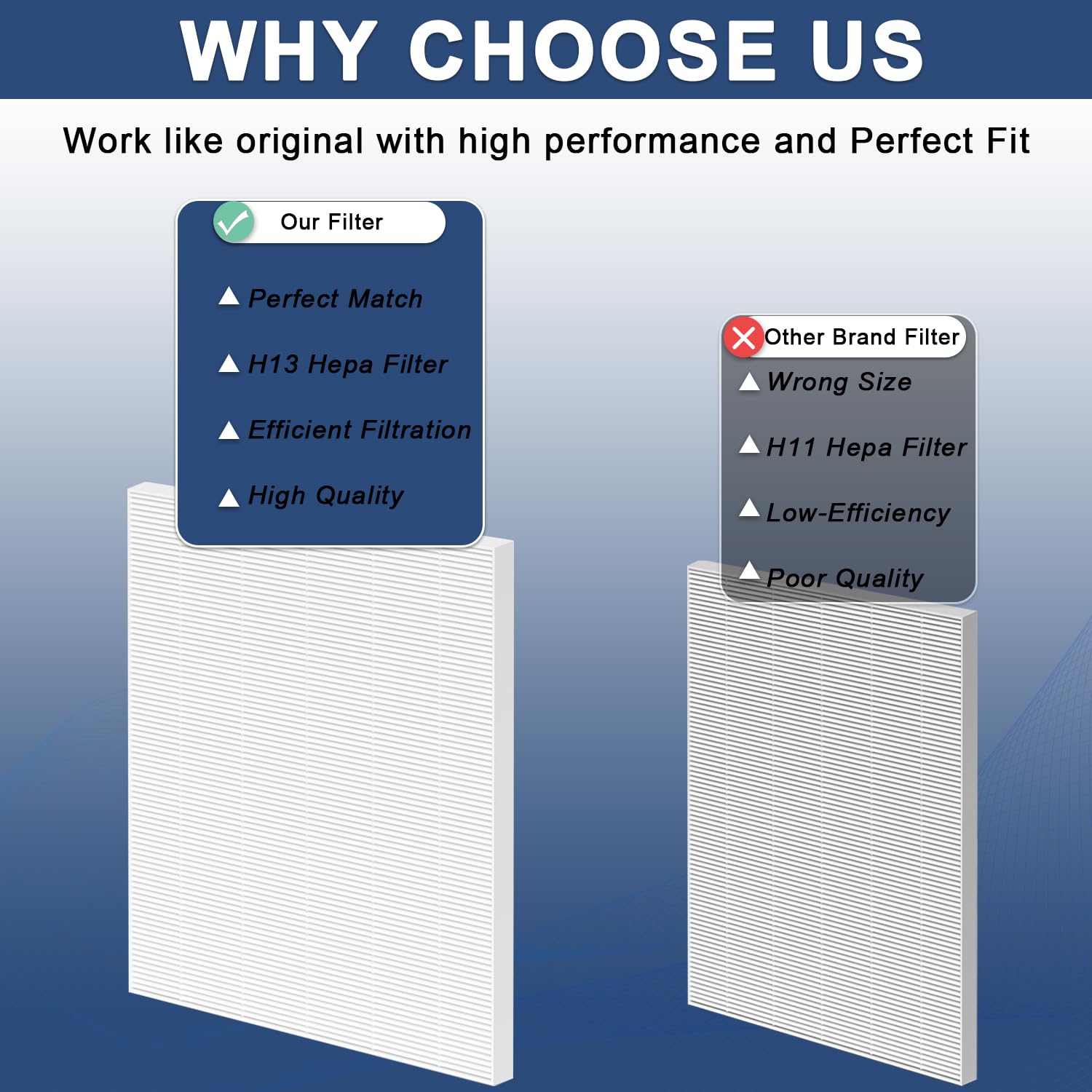 - 【VALUABLE PACKAGE】Our C545 replacement filters contains 4 true H13 HEPA filter and 4 activated carbon filters, packaged well in sealed plastic wrap. They are an efficient investment. Just take the original filter out, and fit the new one in