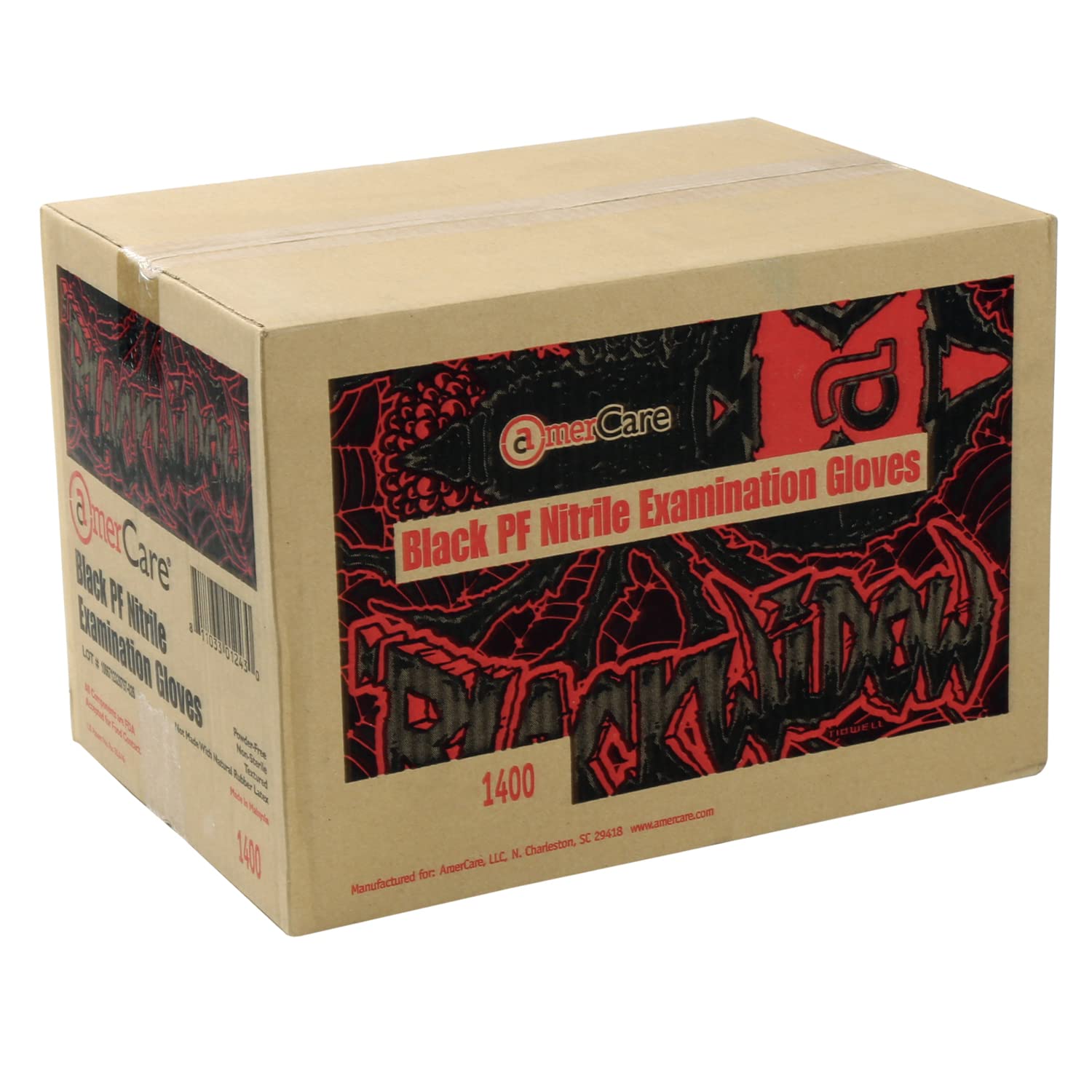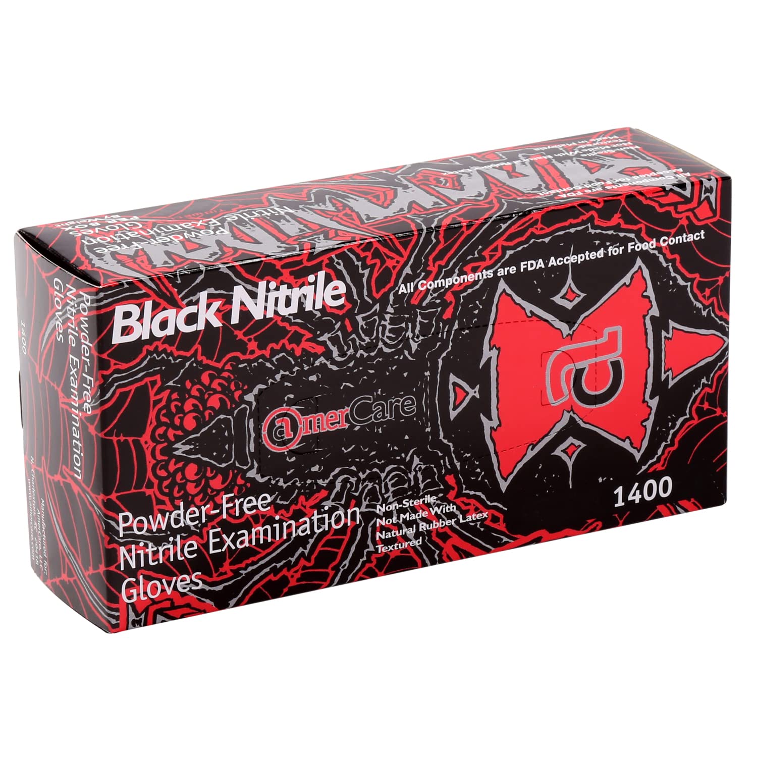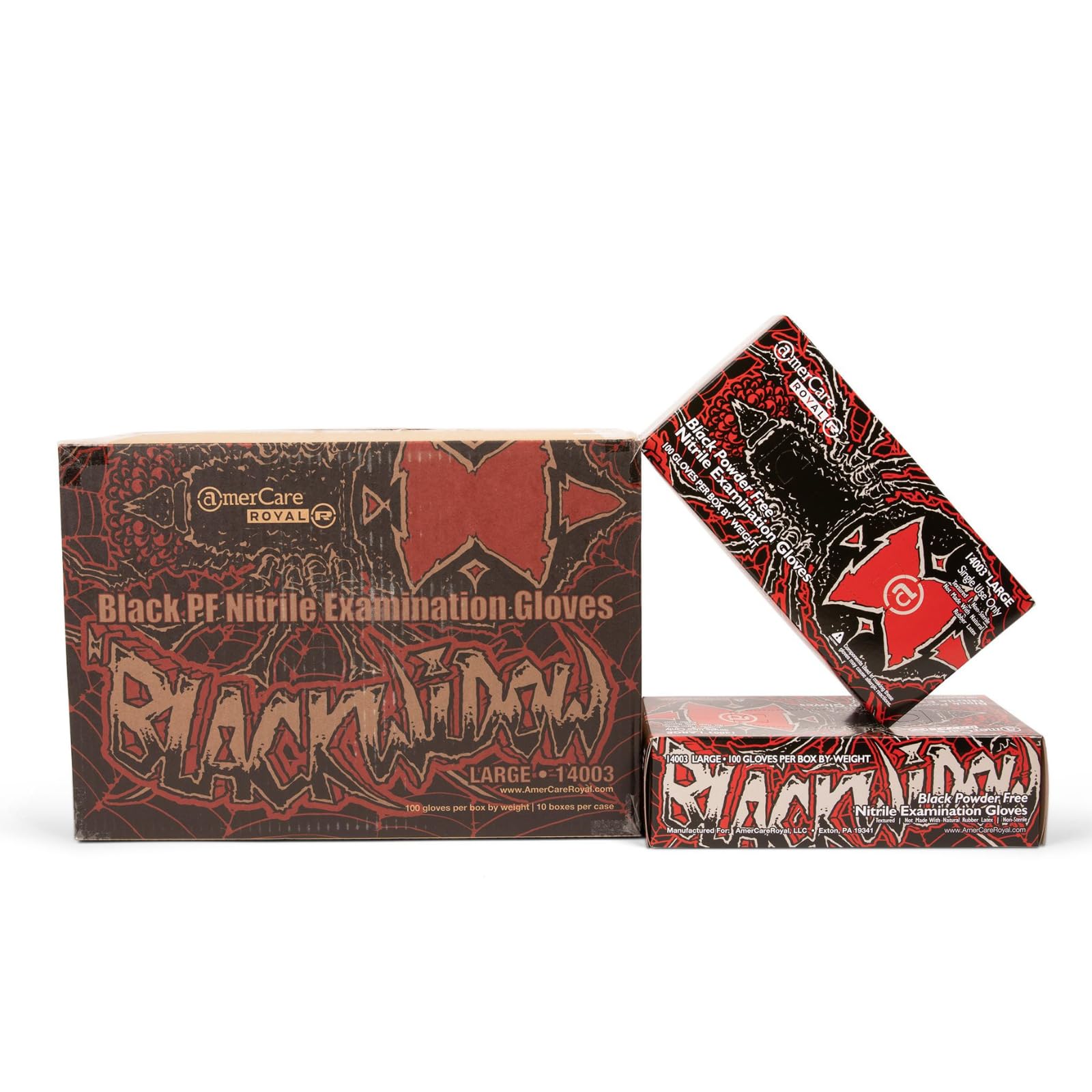 AmerCareRoyal Black Widow Nitrile Latex Free Disposable Gloves - Powder-Free, Exam Grade Gloves with Textured Grip - Large, Black, Case of 1000