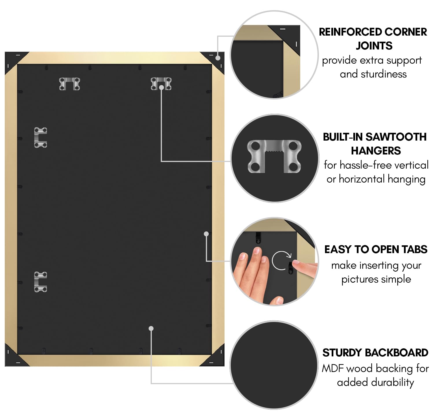 - Display it your way with ease! Our gold picture frames include hanging hardware for both vertical and horizontal placement, ensuring quick, hassle-free installation on any wall so your special moments will always be beautifully showcased.