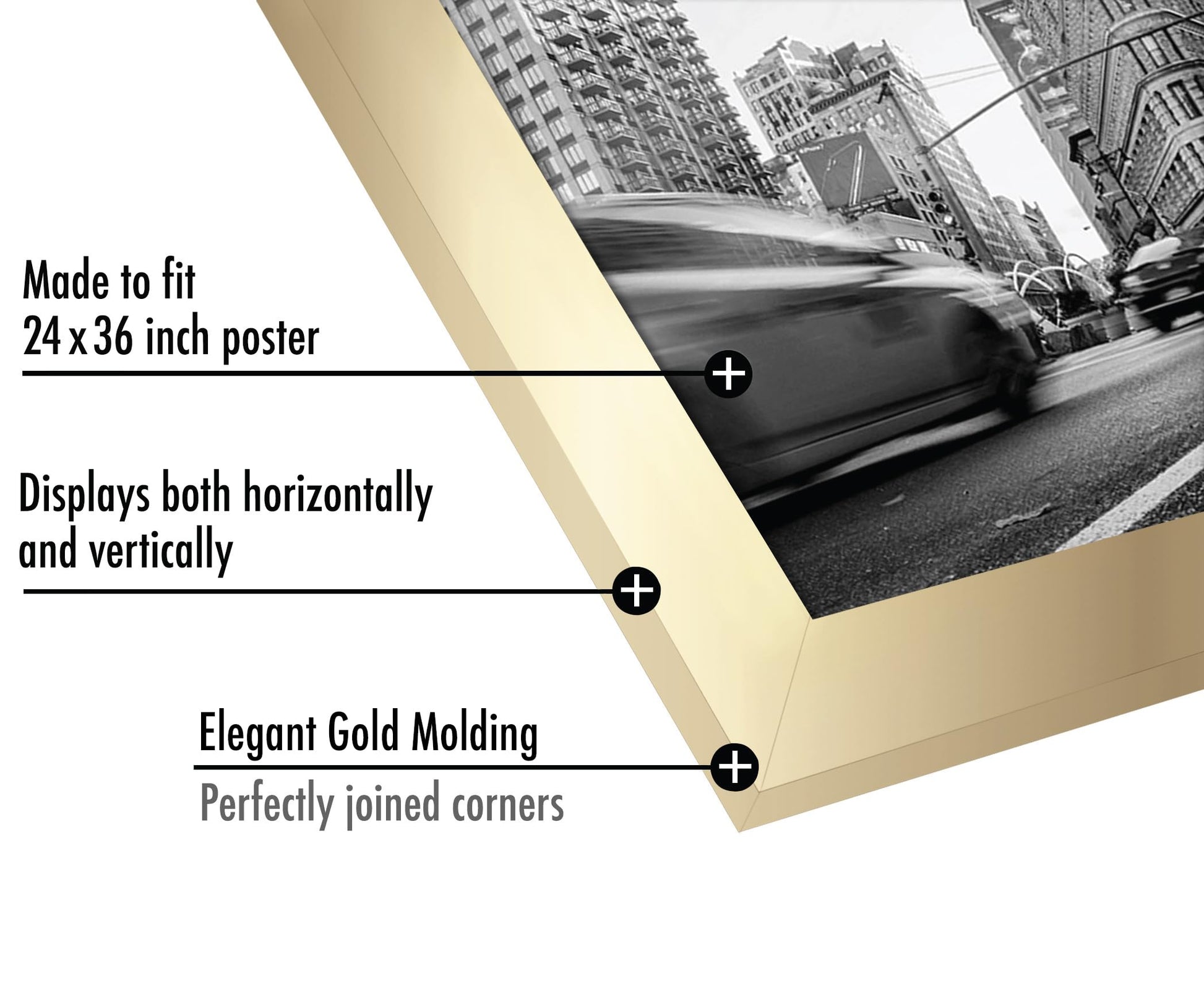 Americanflat 24x36 Poster Frame with Polished Plexiglass - Gold Picture Frame - Wide Photo Frames Made of Engineered Wood for Vertical or Horizontal Wall Display - Epic Collection - Gold