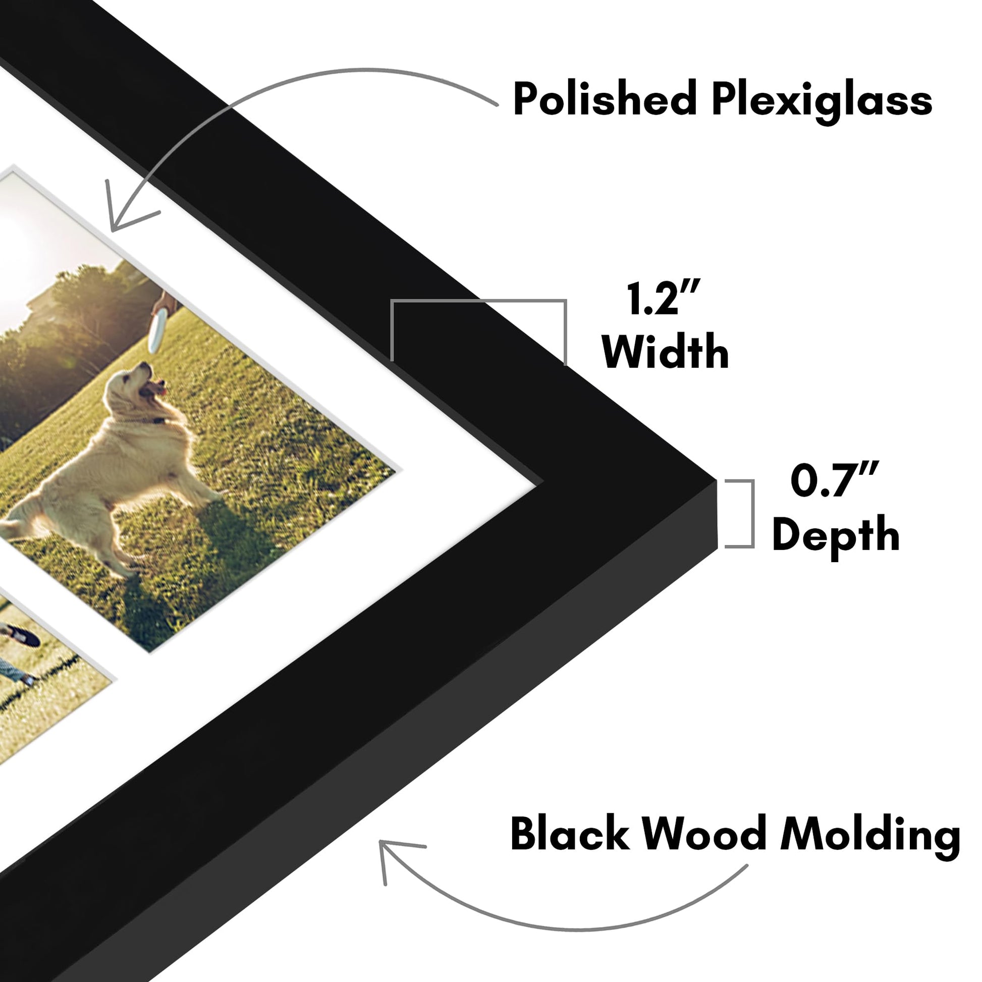 Details: Give your memories the frame they deserve with our Americanflat 18x26 picture frame. Crafted from durable engineered wood (MDF) with a sleek, classic molding, this is more than a picture frame; it’s a game changer for your decor. The polished plexiglass front offers clarity while protecting your photos, posters, or artwork from dust and scratches. Because your favorite moments deserve nothing less than perfection. Versatility meets style with these collage frames. Hang it vertically or horizontally using the included hanging hardware, and make it the perfect fit for any wall. It's the ideal way to showcase your cherished photos anywhere in your home or office. Display sixteen 4x6 photos with the included mat or remove the mat for a 18x26 display. No matter how you style it, the timeless black finish adds a touch of elegance, instantly elevating your space. Refreshing your display has never been easier. The metal tab closures make swapping photos a breeze, so you can update your walls as often as you like. Plus, the sturdy backboard keeps everything securely in place, ensuring your memories always look their best. Why settle for boring walls when you can have a gallery at home? This photo frame is built to last, combining style and functionality to create keepsakes you’ll treasure forever. Order yours today and join thousands of satisfied customers who’ve transformed their spaces with Americanflat.