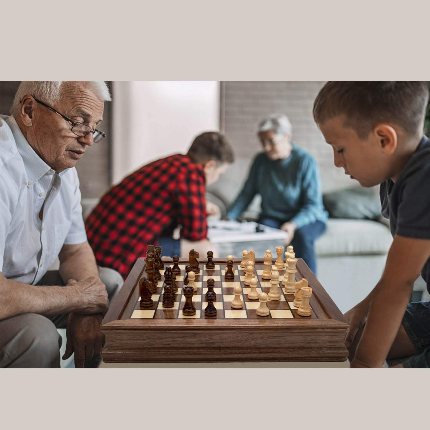 - ELEGANT BOARD - The chess board game is made of walnut wood with delicate texture and details to ensure a quality touch feel while playing the game. The wood is also durable and built to last for long-term usage