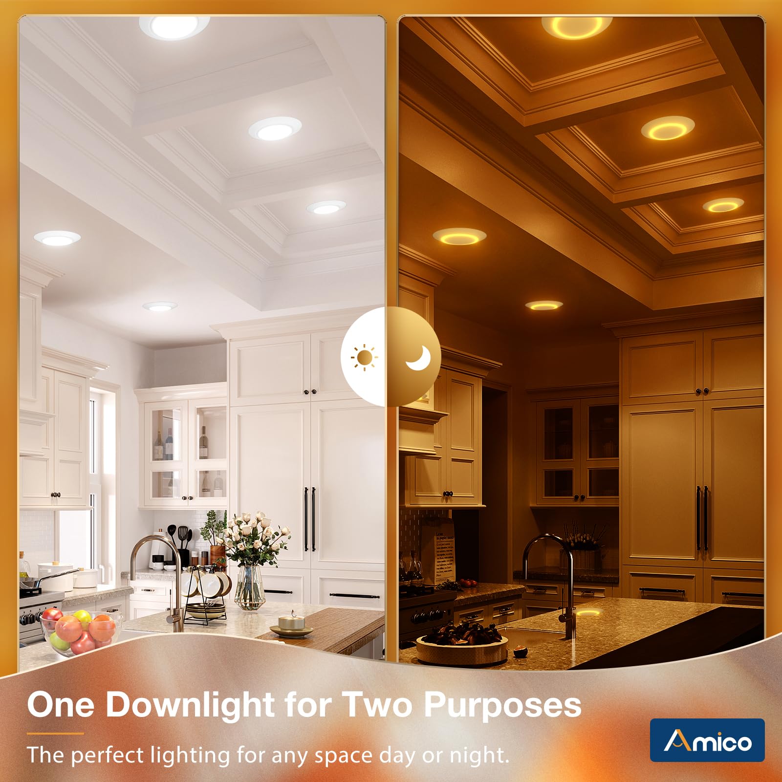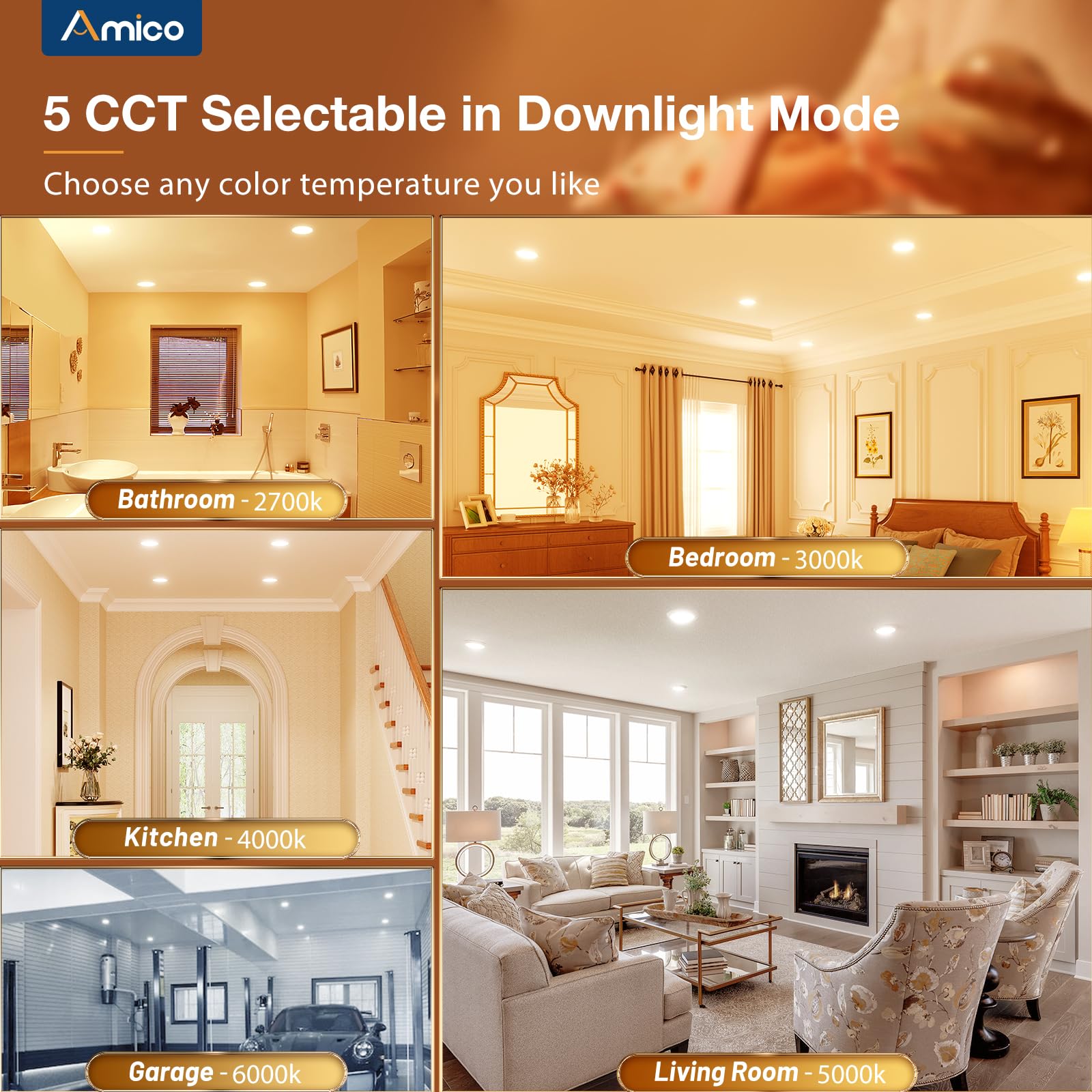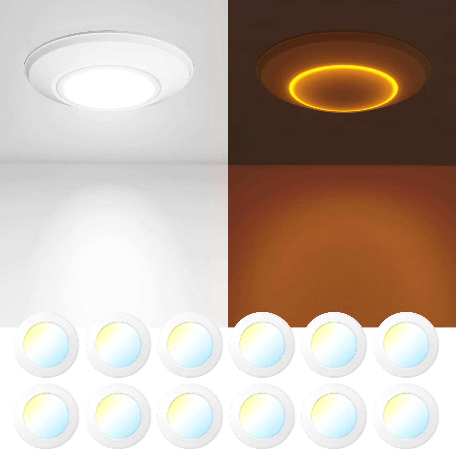 Amico 12 Pack 5CCT 5/6 Inch LED Disk Lights with Night Light, Dimmable Flush Mount Ceiling Disc Light, 2700K-6000K Selectable 12W Eqv 110W, 1050LM,Low Profile Surface Mount Ceiling Lights, ETL&FCC