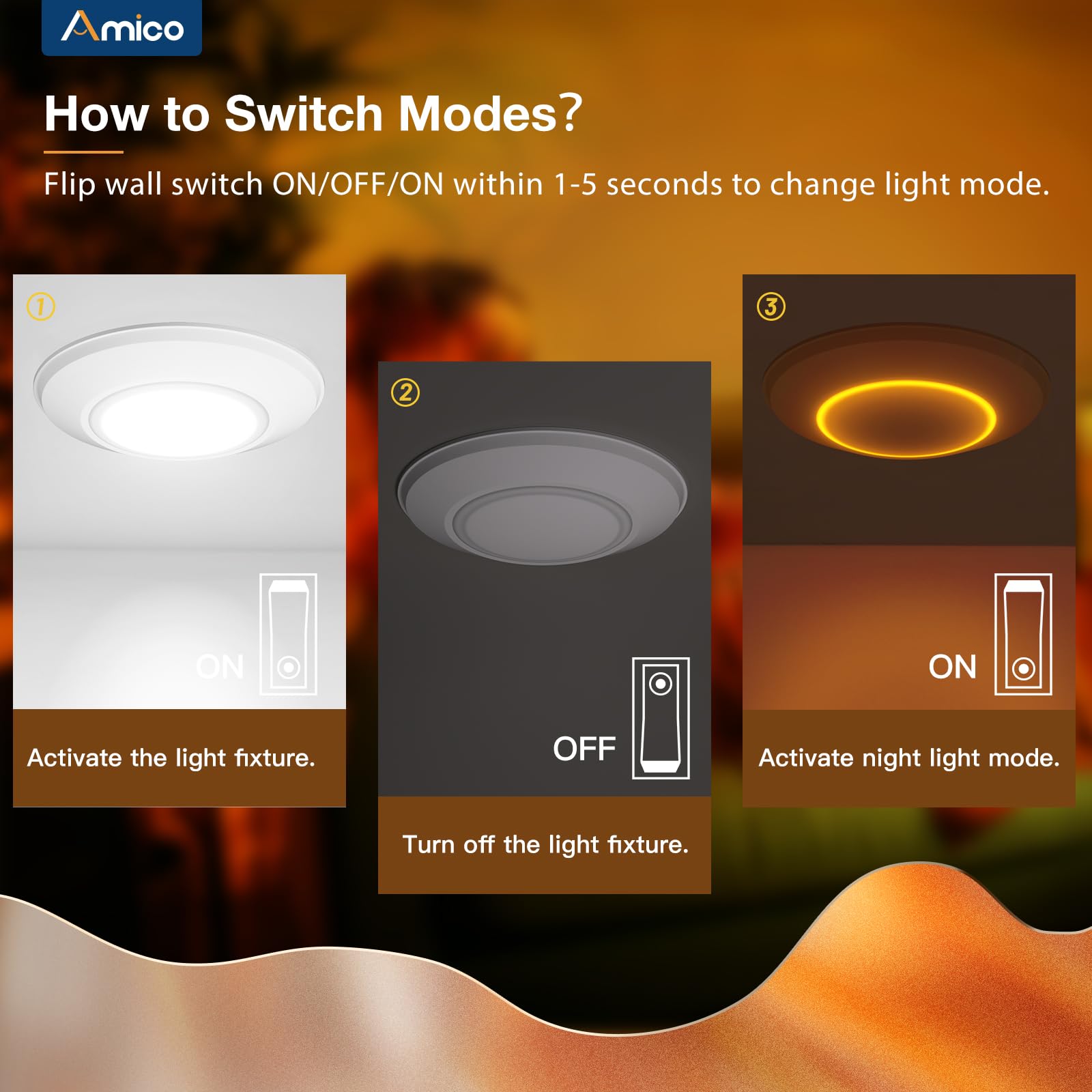 - [Night Light Mode] Simply turning the switch off and on again allows our disc light to switch to night light mode, emitting a 2000K amber glow. This provides a very soft lighting option, offering more flexible lighting choices for your home.