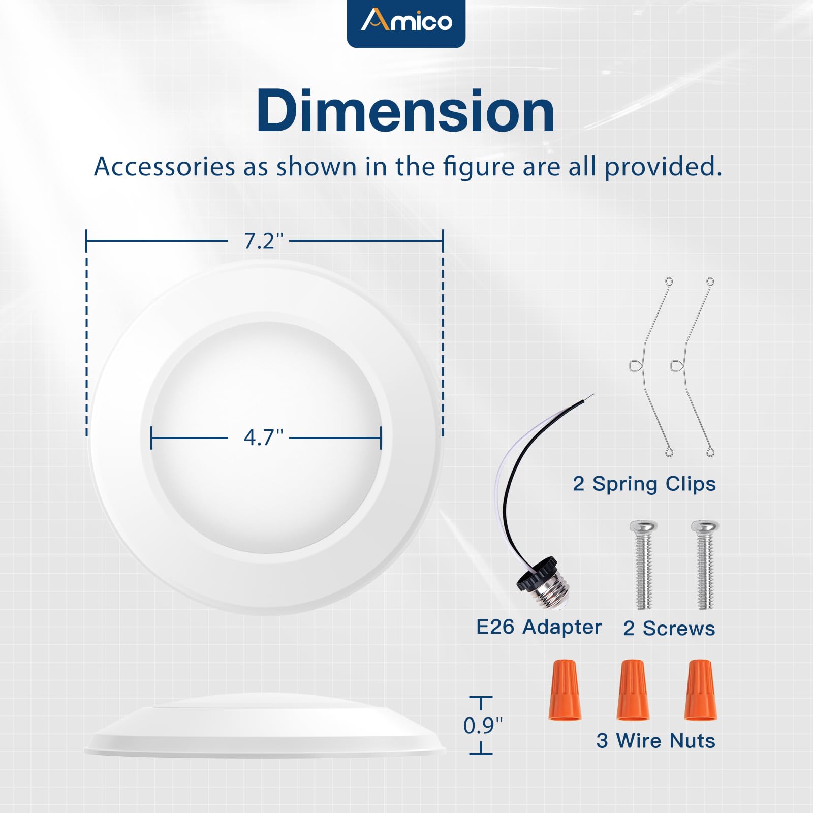 - [Wide Range of Applications] Amico retrofit surface mount ceiling lights are ideal for various spaces such as living rooms, bedrooms, kitchens, hallways, basements, and offices. Damp rated, these disk lights can also be placed in bathrooms, showers, or outdoors under porches or eaves.