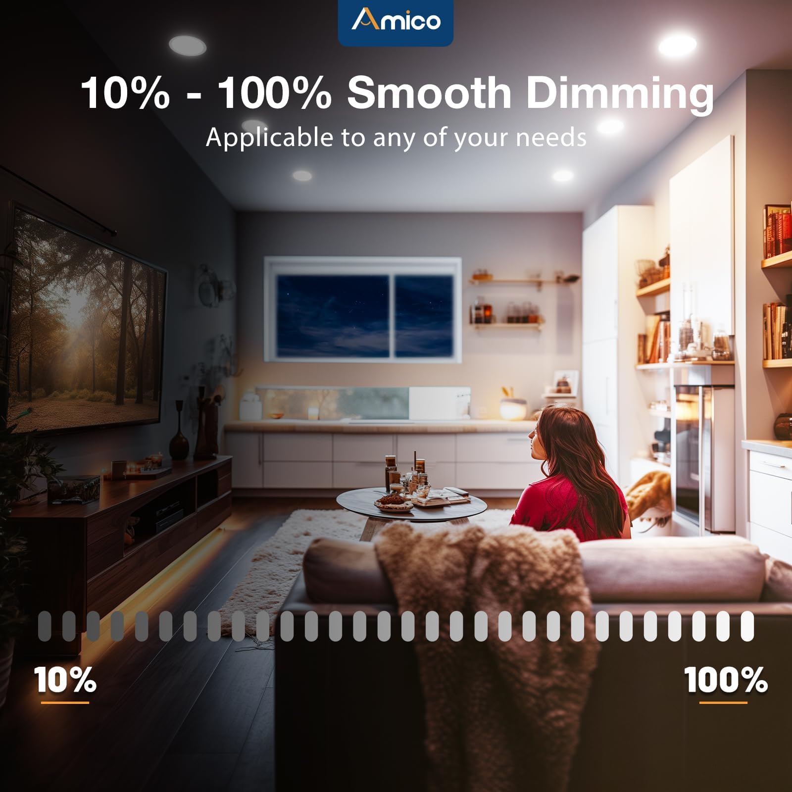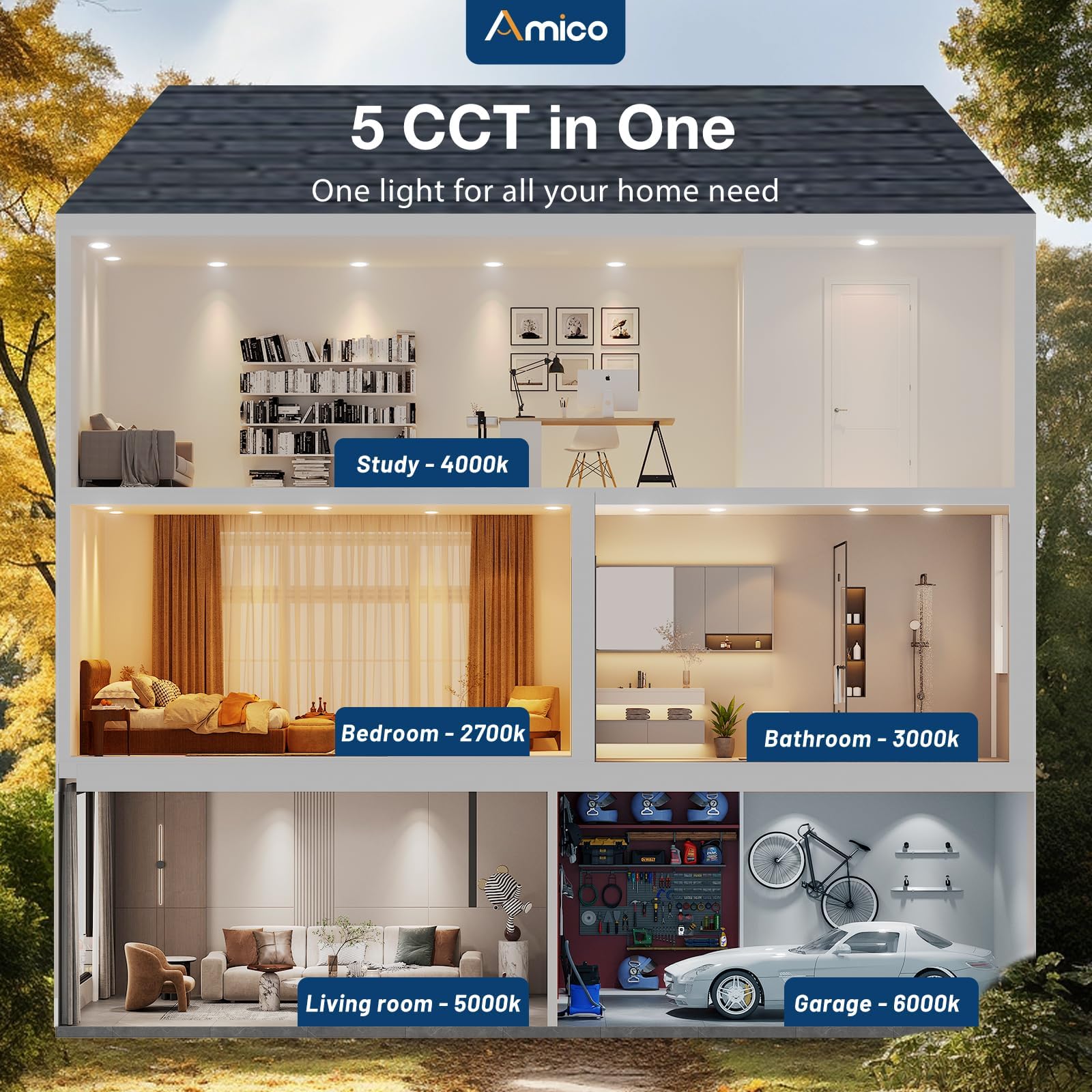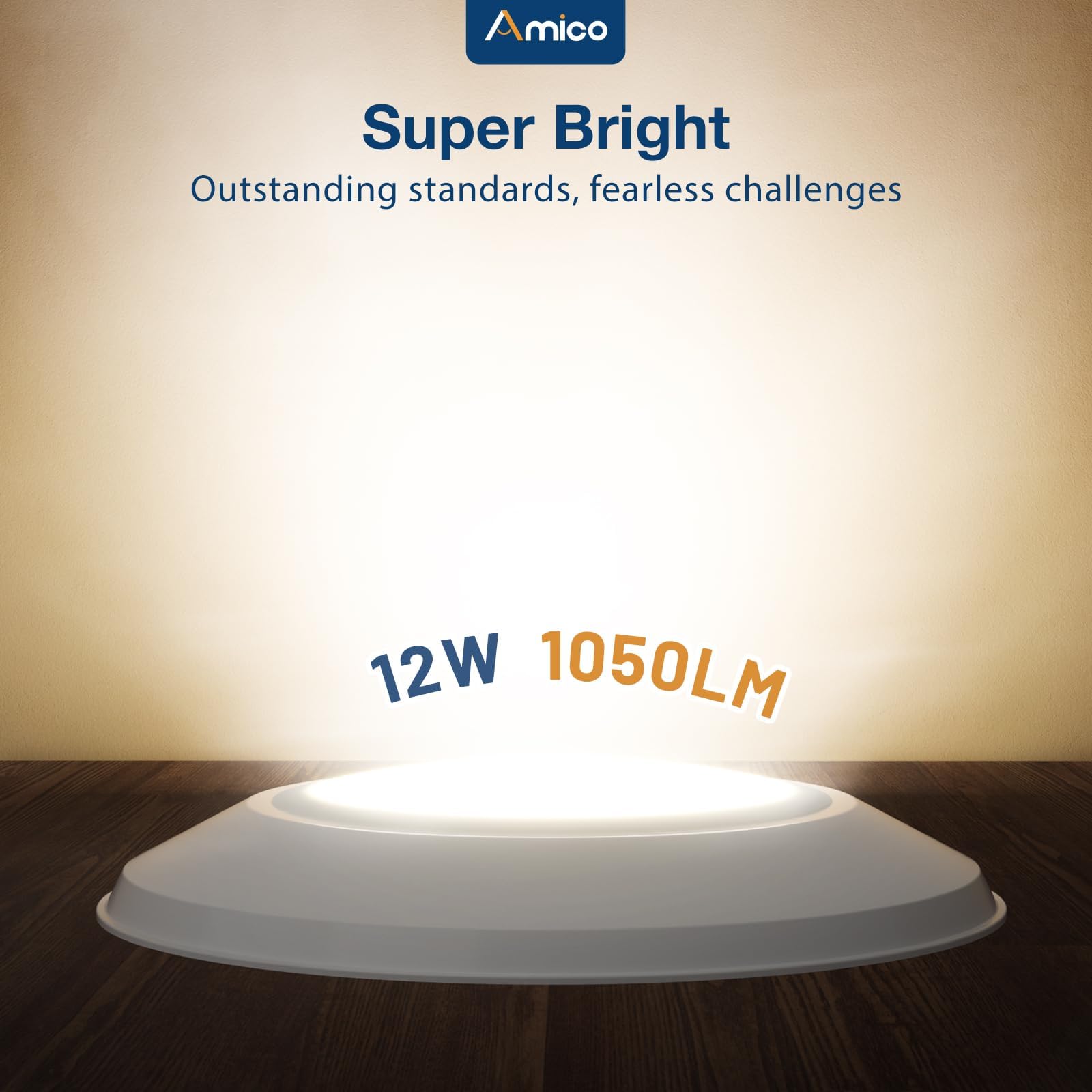 Amico 24 Pack 5/6 Inch LED Disk Lights, Dimmable Flush Mount Ceiling Disc Lights, 2700K/3000K/4000K/5000K/6000K Selectable, 12W Eqv 110W, 1050LM, Low Profile Surface Mount Ceiling Light, ETL&FCC