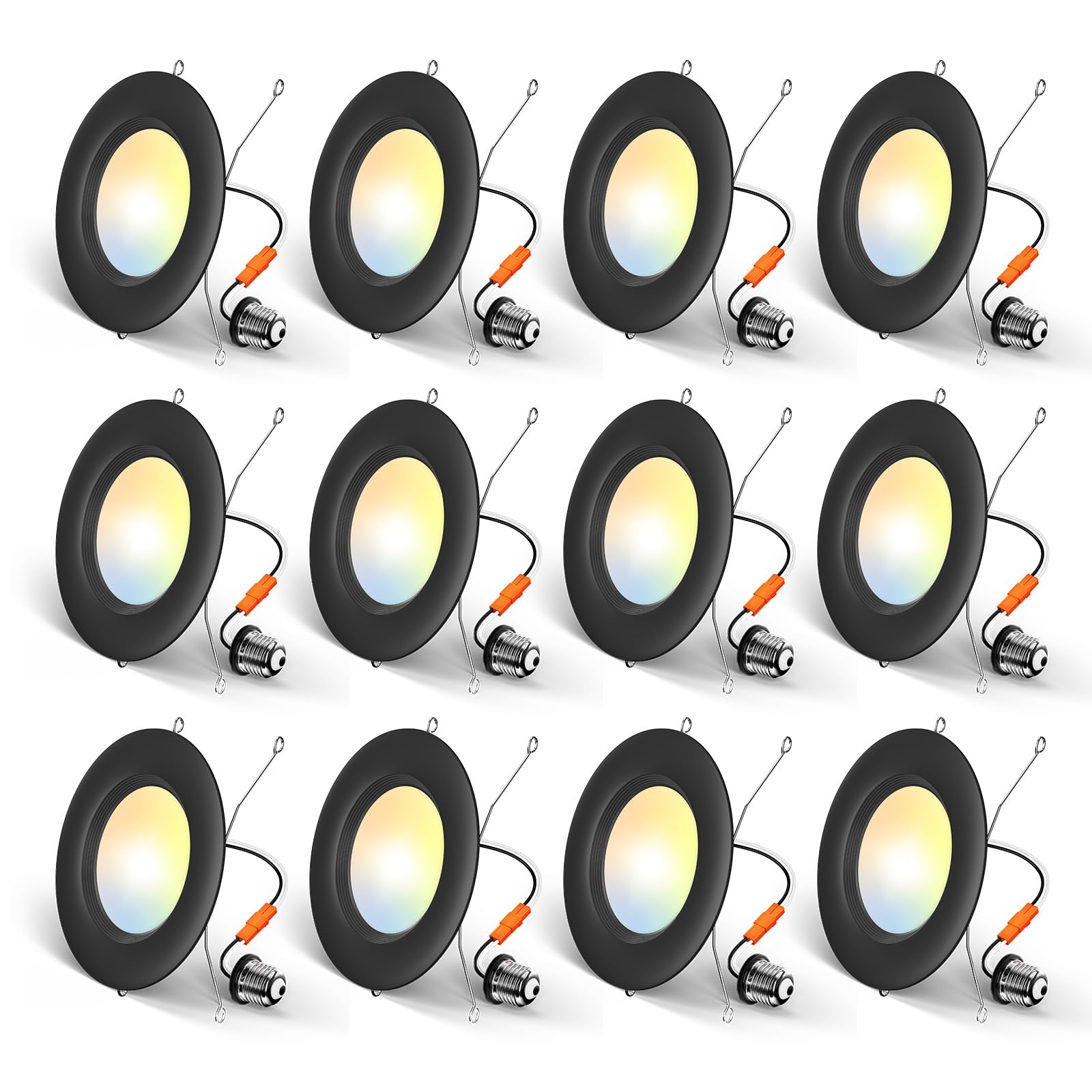 Amico 5/6 inch 5CCT LED Recessed Lighting 12 Pack, Dimmable, Damp Rated, 12.5W=100W, Can Lights with Baffle Trim, Retrofit Installation, ETL&FCC, Black