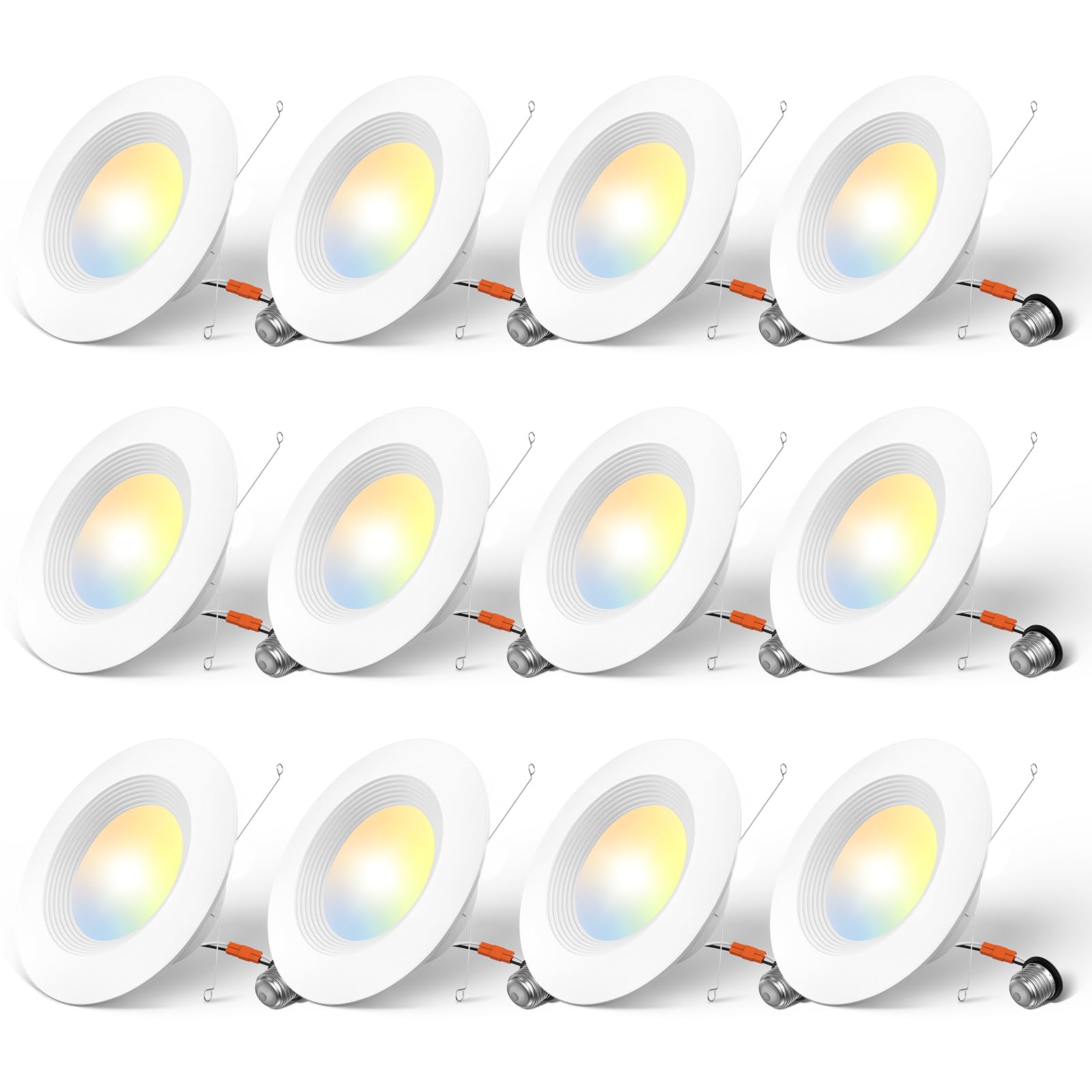 Amico 5/6 inch 5CCT LED Recessed Lighting 12 Pack, Dimmable, Damp Rated, 12.5W=100W, Can Lights with Baffle Trim, Retrofit Installation, ETL&FCC, White