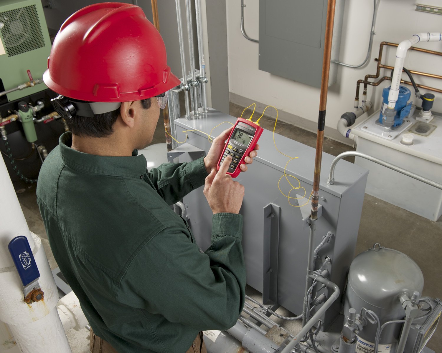 - Portable, dual-input thermometer for reading temperatures from two sources simultaneously, and USB data transfer, and is used in quality control and HVAC, electrical, industrial, and automotive maintenance