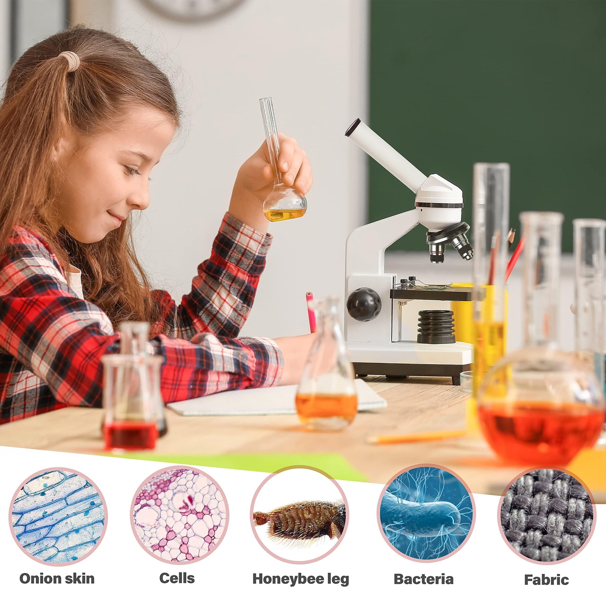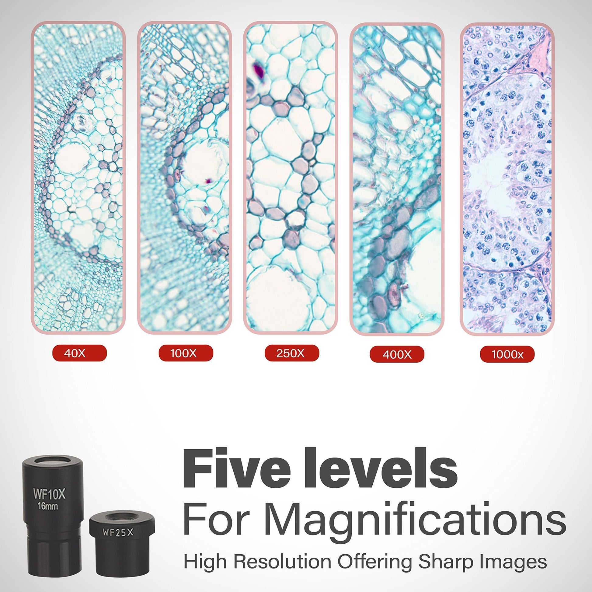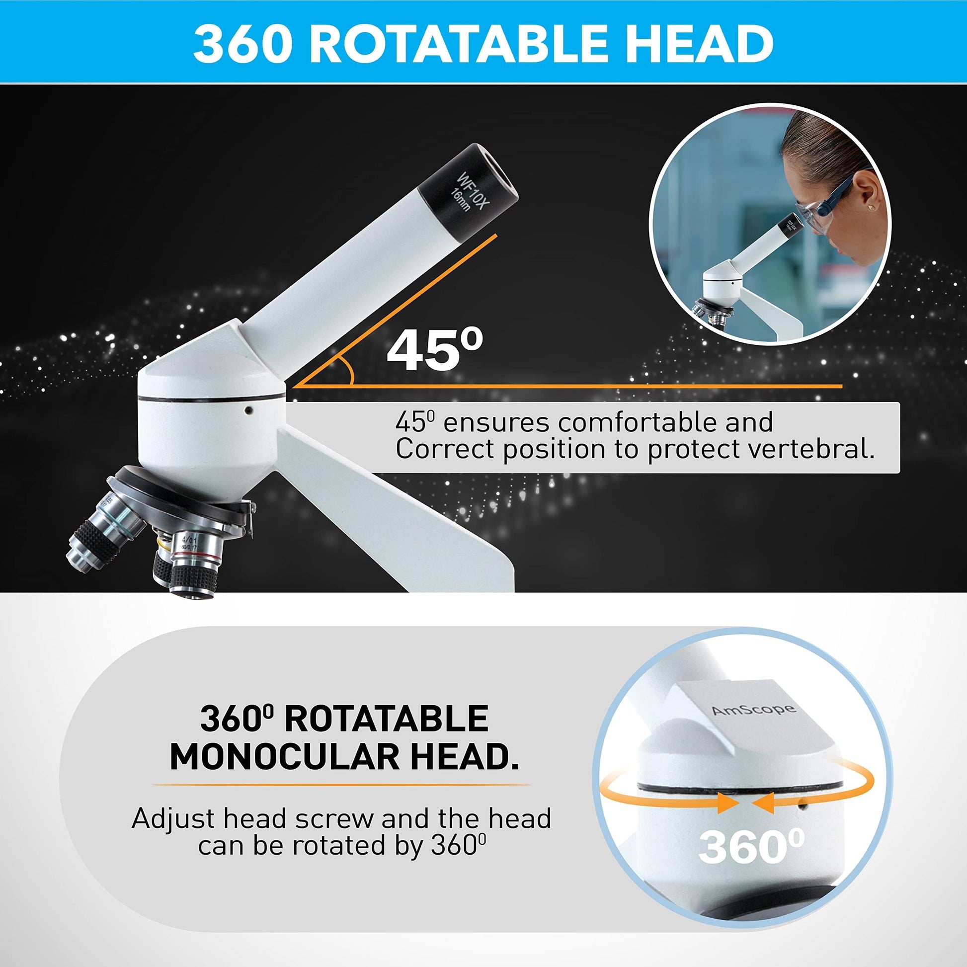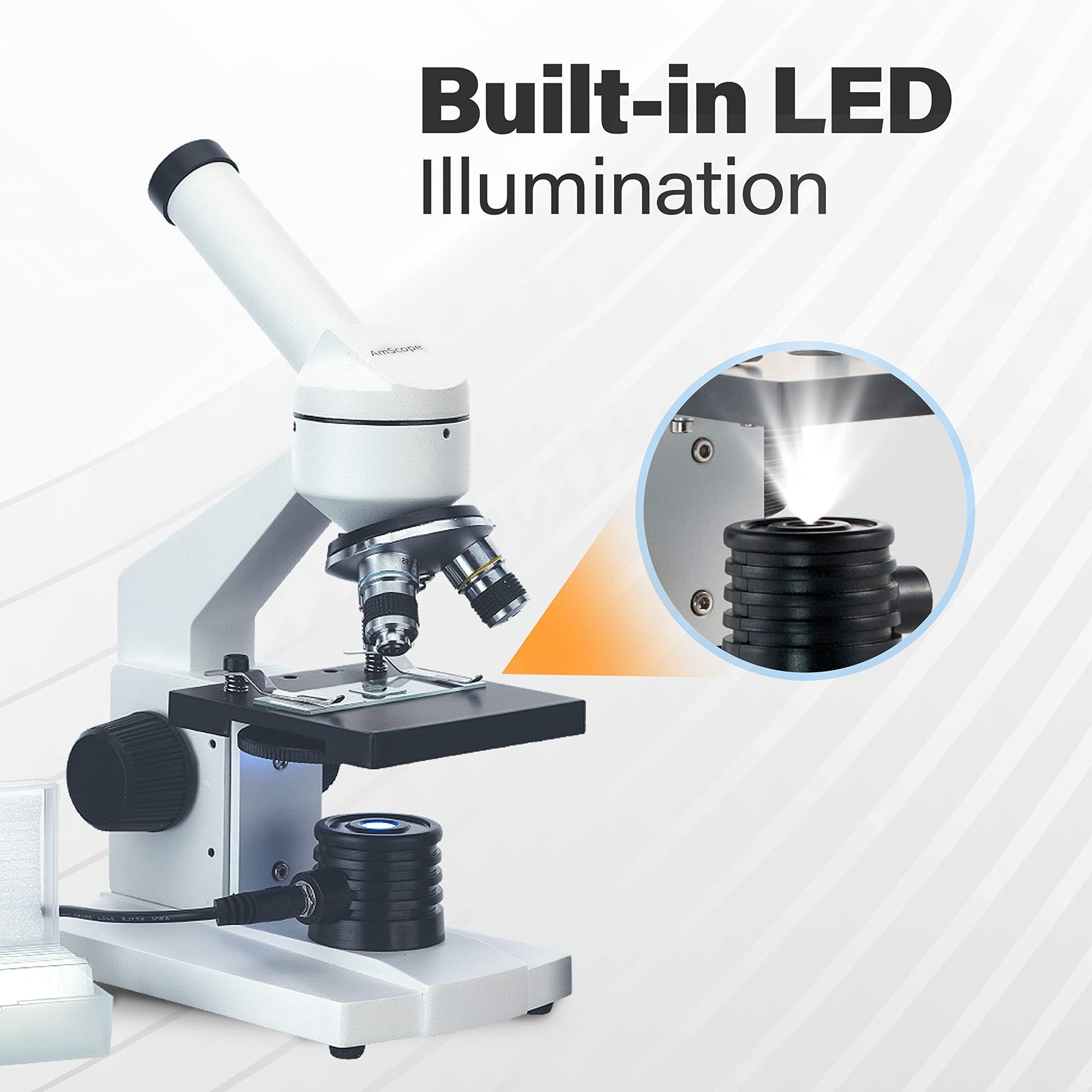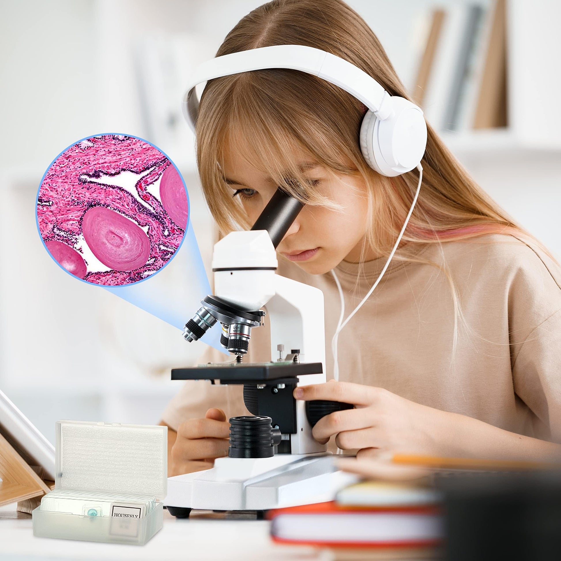 AmScope - M102C-PB10 40X-1000X Biological Compound Microscope with Prepared and Blank Slides for Student and Kids