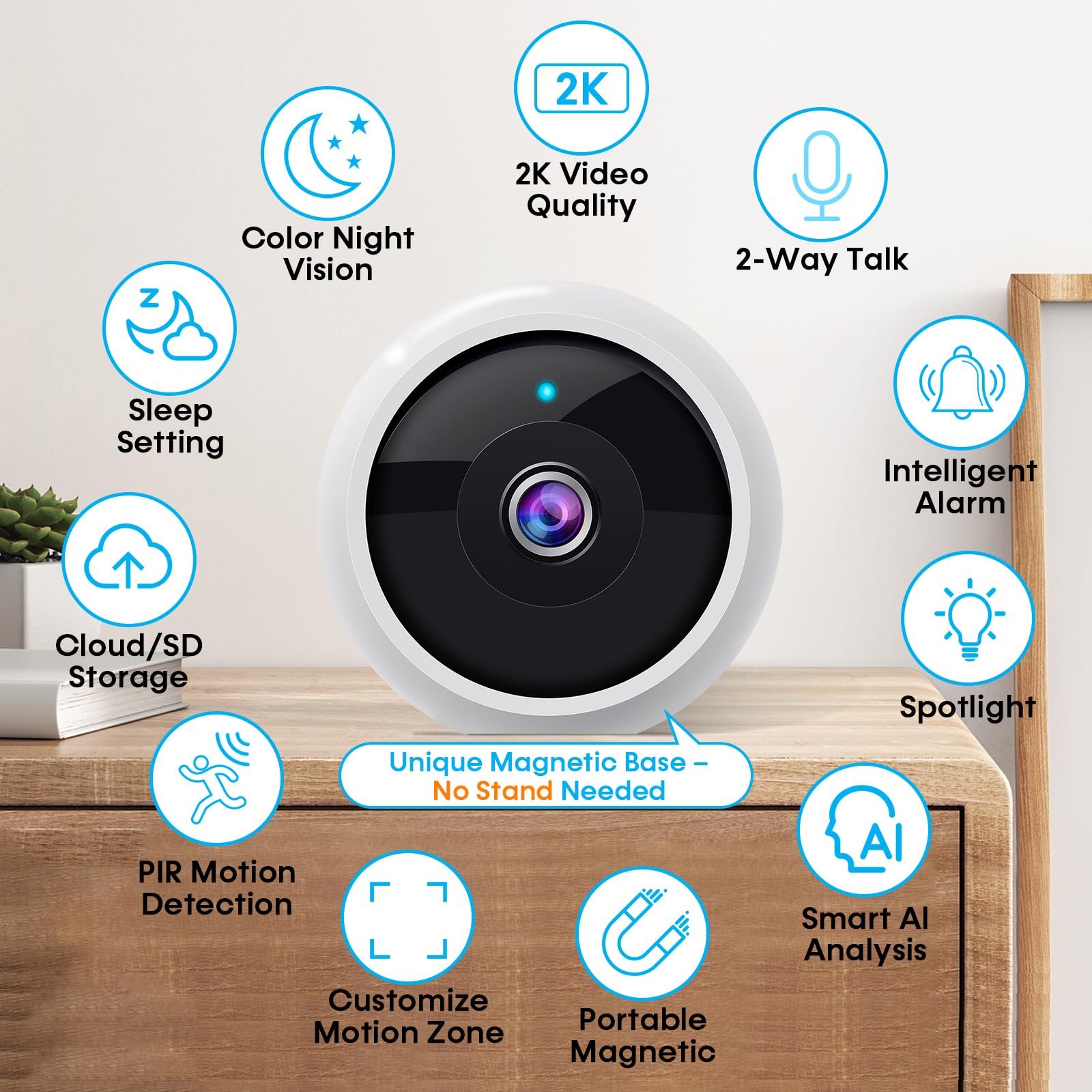 AMTIFO Security Cameras Wireless Outdoor Magnetic: Install-Free Smart Indoor 2K WiFi - Long Battery Life Powered Wireless Cameras for Home Security with AI Motion Detection