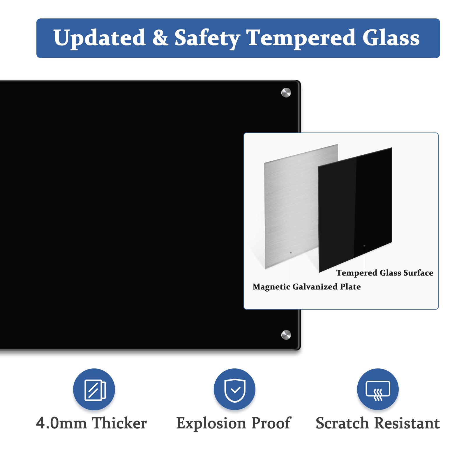 - LONG-LASTING MAGNETIC GLASS -- This black glass dry erase board is made of durable magnetic tempered glass that ensures its longevity. The strong magnetic surface allows you to securely attach important documents, notes, and reminders without worrying about them falling off.