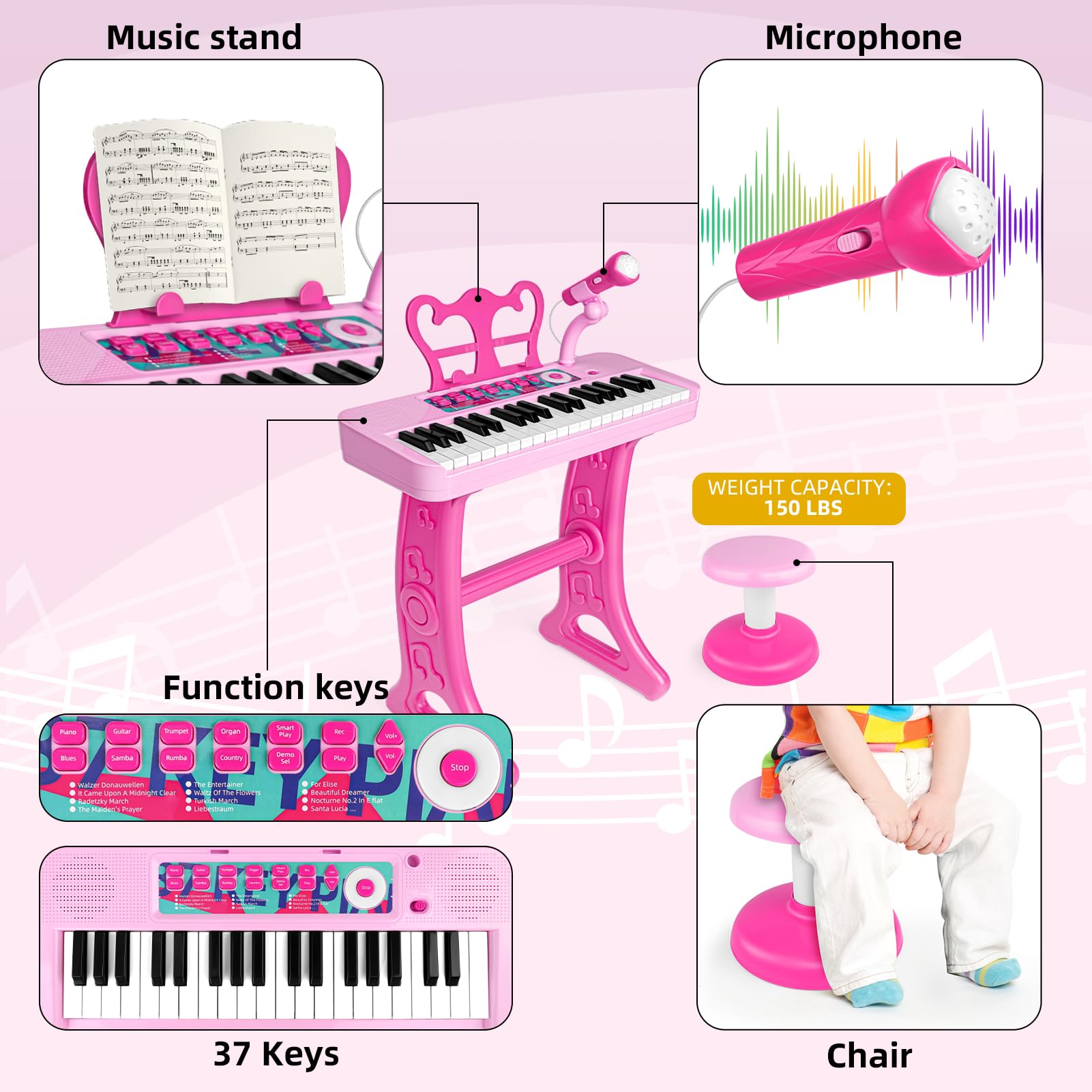 - 【37 Keys Keyboard Toy】--37 keys provide a wide range of notes, helps develop hand-eye coordination and musical skills