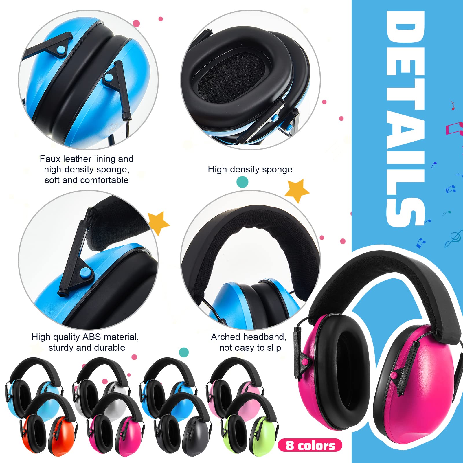 - Package Content: you will be provided with 12 pieces of 27dB noise cancelling ear muffs for kids from 2-16, 2 of black, rose, silver and blue, 1 of light blue, pink, orange and green, colorful and adequate to fully meet kids' daily needs, also you can share with intimate mates and family members