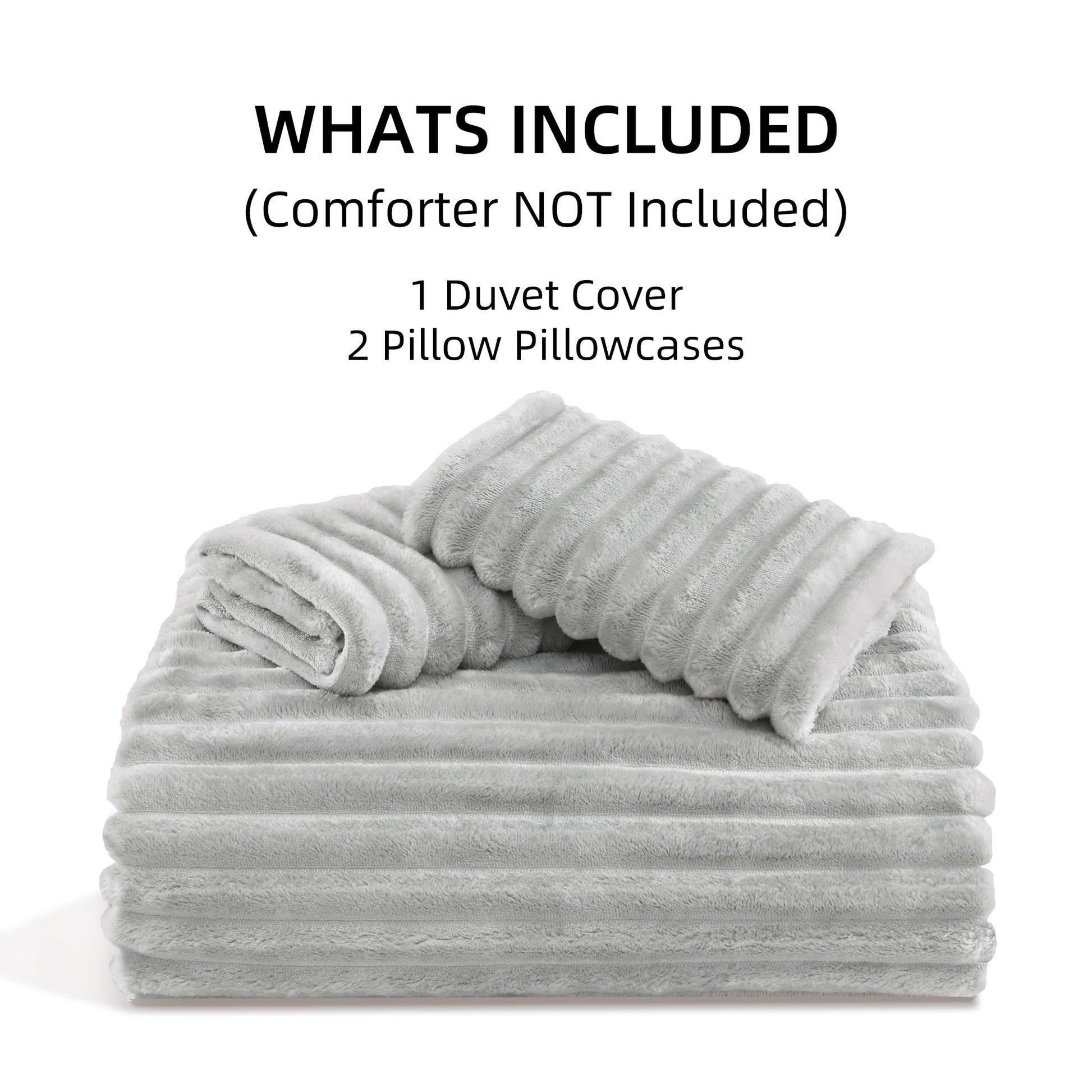 Andency Fluffy King Size Duvet Cover, Gray Striped Plush Microfiber Fleece Comforter Cover, Ultra-Soft Lightweight Bed Set, 3 Piece Warm Faux Fur Bedding for All Season, Two-Way Zipper