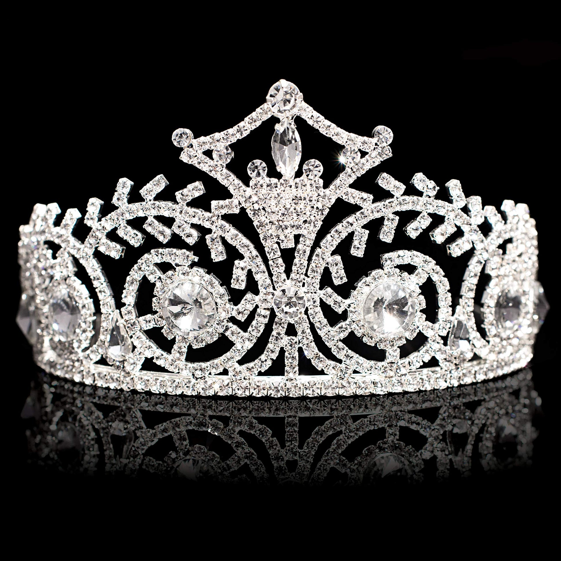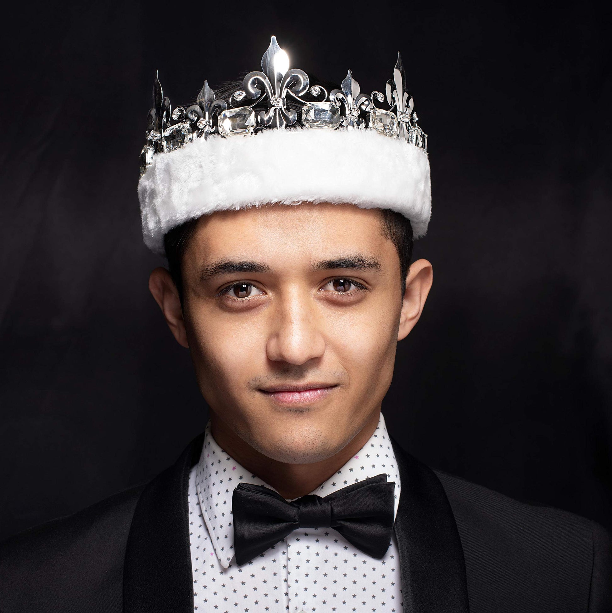 Anderson's Fleur-de-Lis Crown with White Faux Fur and Elsa Queen Tiara Royalty Set, King and Queen Set For Prom, Homecoming, School Dance, Costume, Party, Pageant, Event