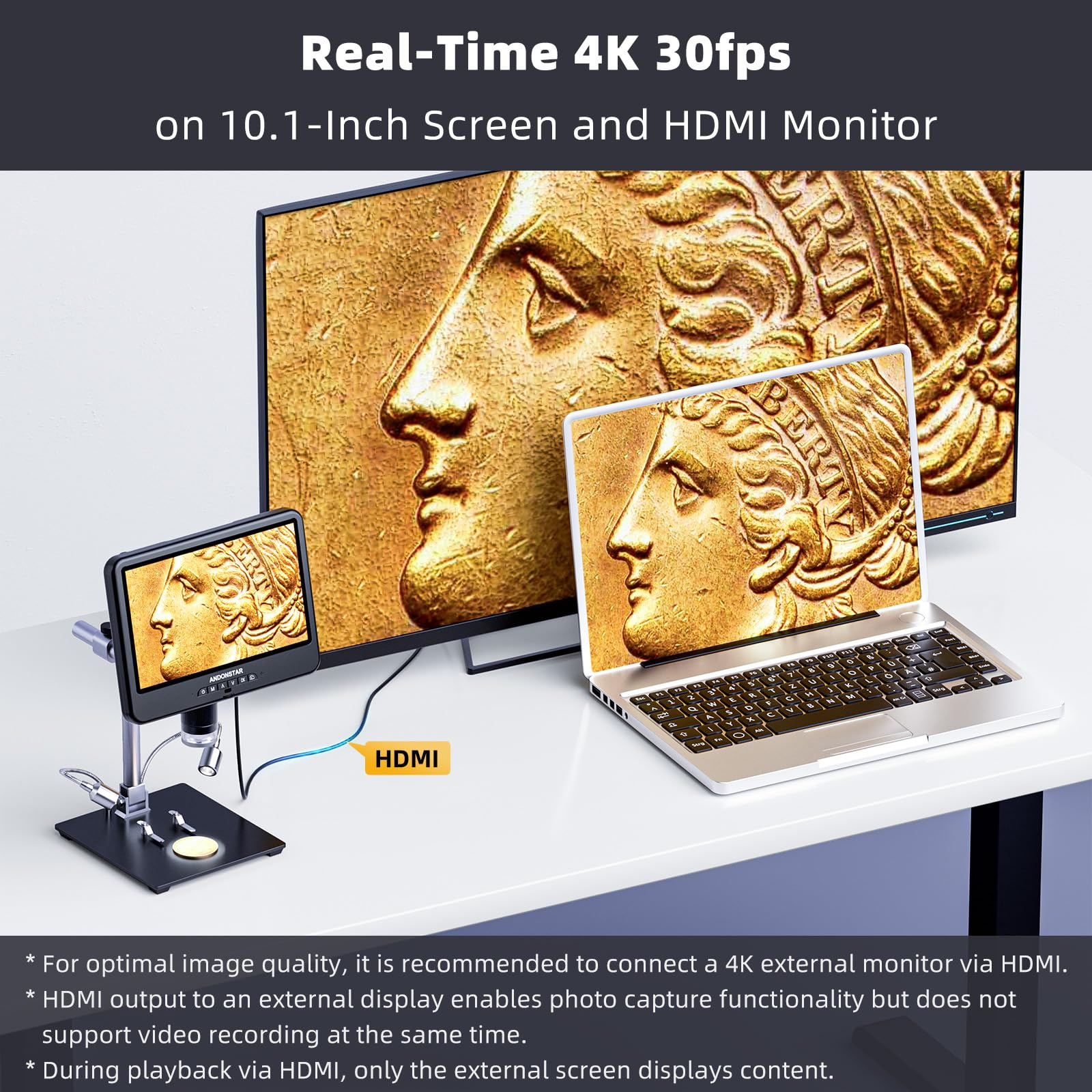 - 【Versatile Magnification for Every Need】Built-in 10-inch screen with up to 480X magnification (8X digital zoom), and HDMI output to a 32-inch 4K monitor for up to 1500X magnification (8X digital zoom). Ideal for both professionals and hobbyists.
