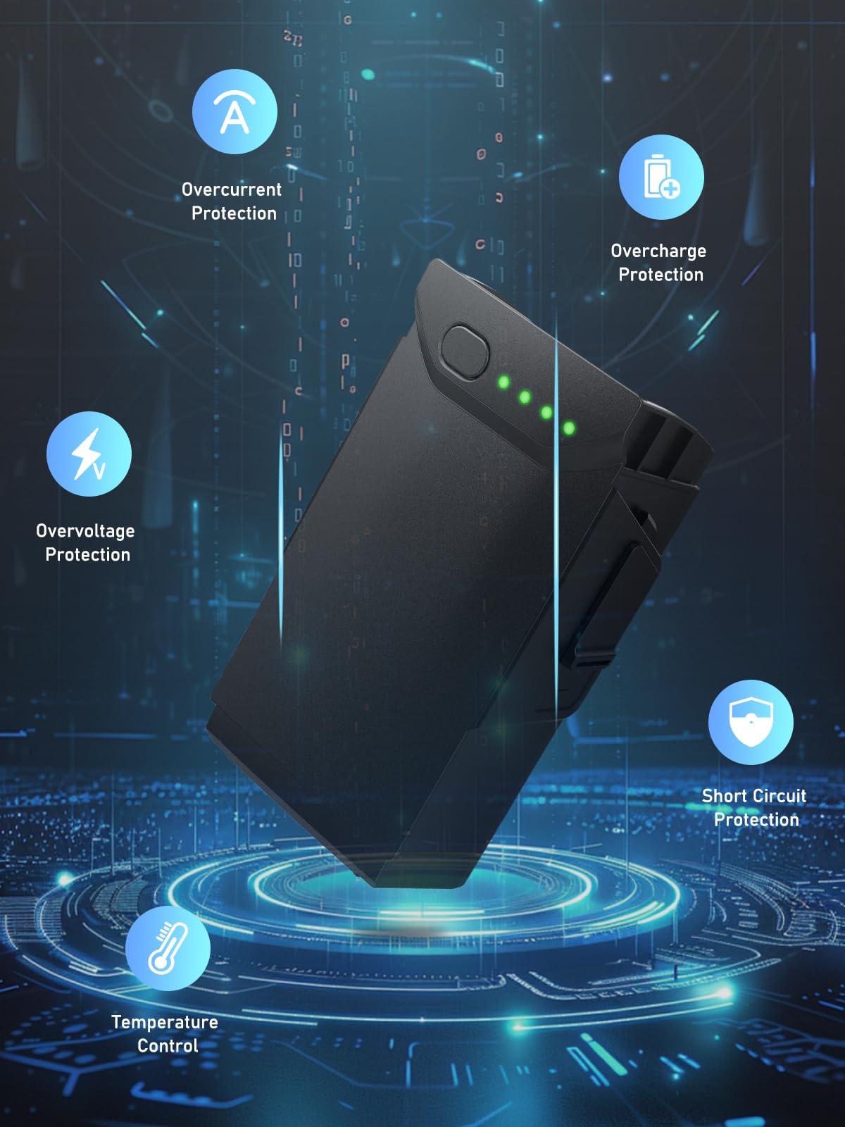 - Convenient to USE: 4 LED lights was built in Mavic Air battery, you will know the battery status and remaining power in real time. 2375mAh capacity support 21 minutes max of flight time per charge, fly with peace of mind