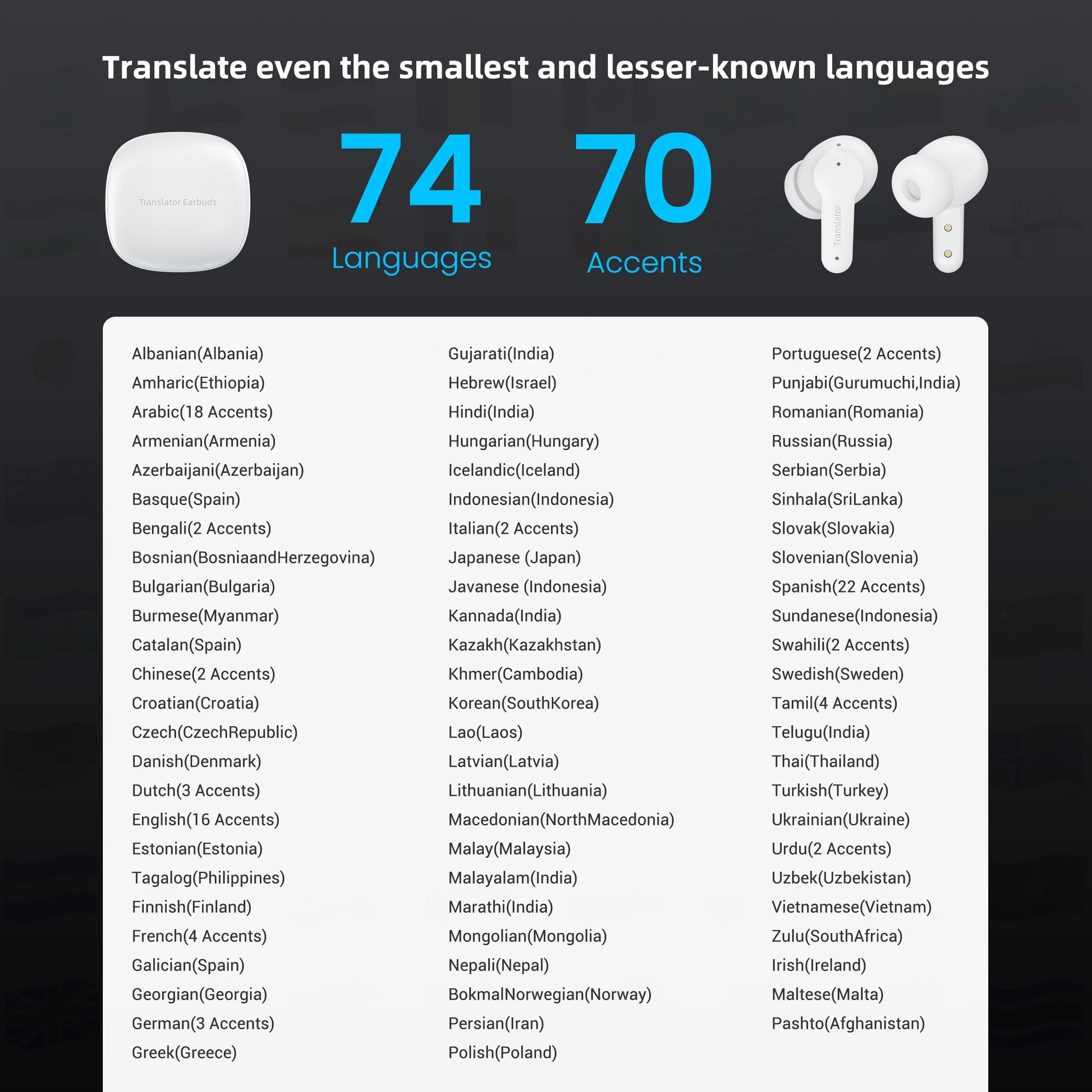 - Seamlessly Communicate in 144 Languages and Accents: With the Anfier M3 AI Translation Earbuds, experience rapid and precise translation in 144 languages and accents, including instant translator earbuds functionality, enabling effortless global communication. No Subscription Required