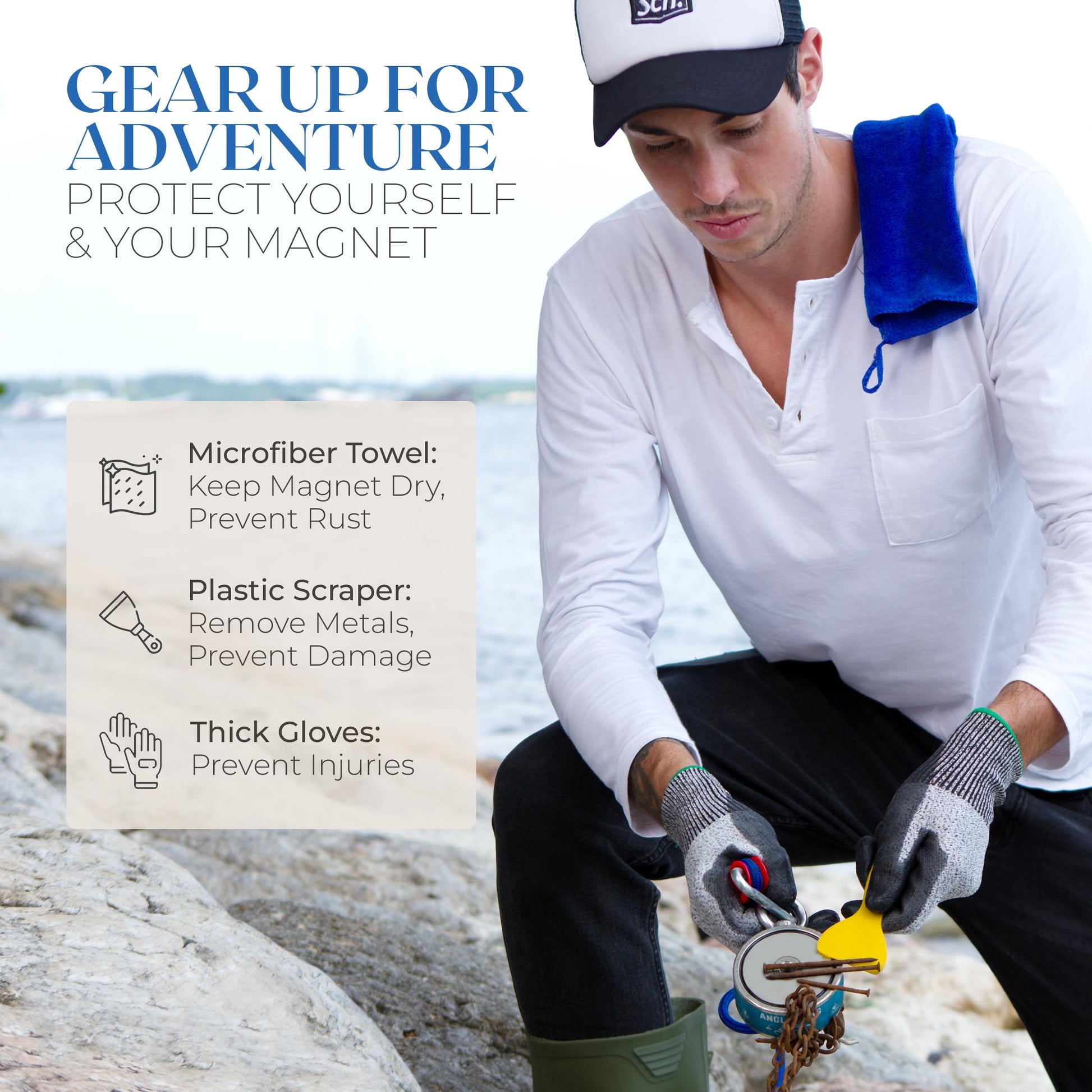 - ✔ FIND VALUABLE METALS IN RIVERS, LAKES & OCEANS … accessories safely remove metal objects from the neodymium fishing magnet kit. Use the scraper, microfiber towel, and mesh bag to protect the magnet from damage and rusting after your outdoor adventures.