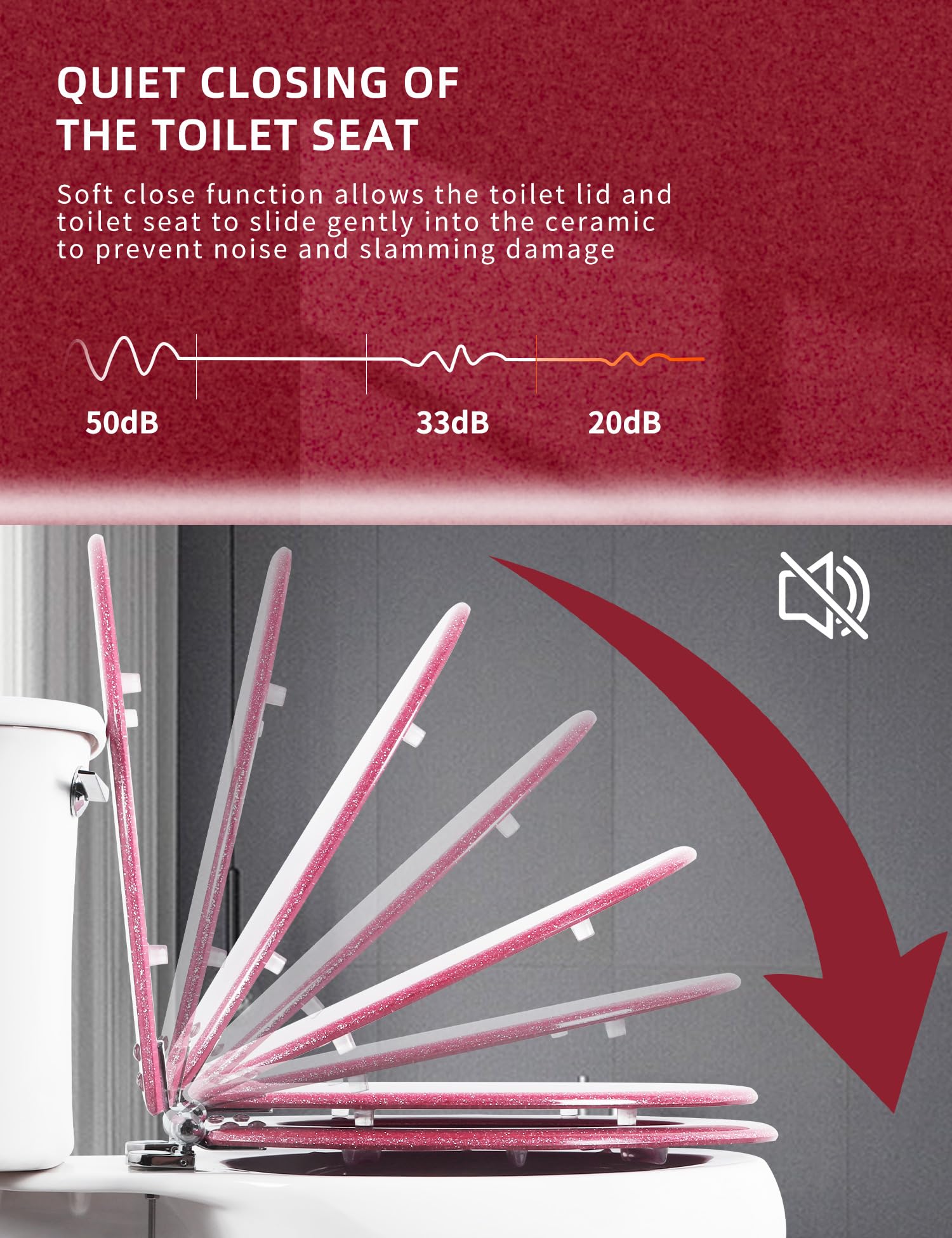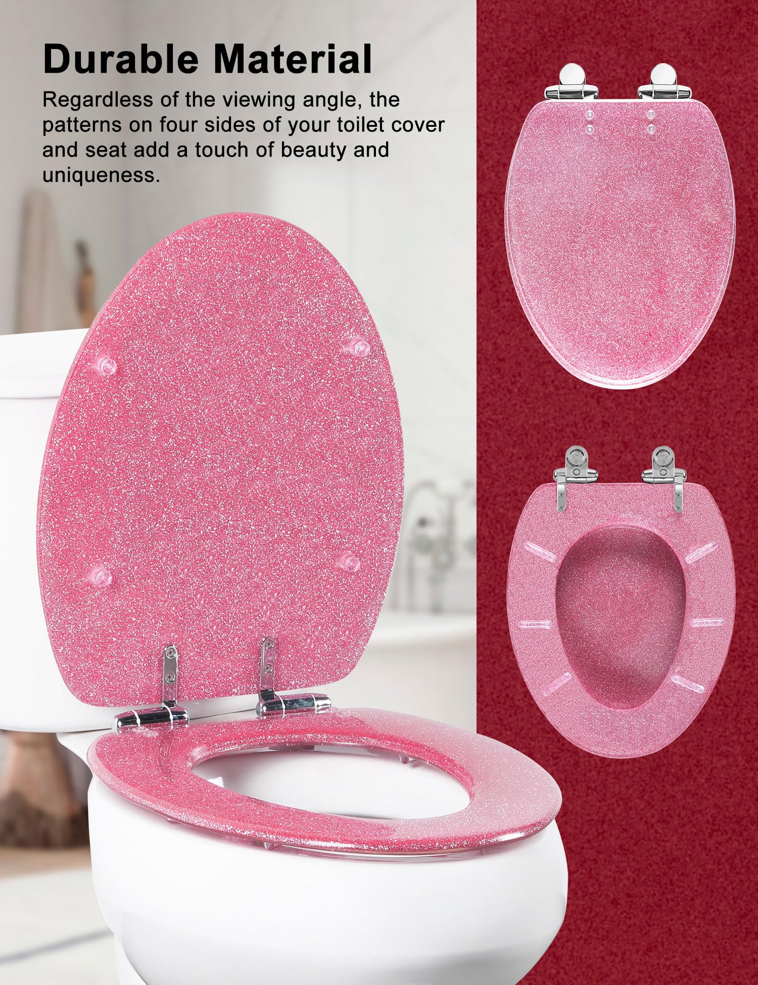 - PINK GLITTER TOILET SEAT: Angol Shiold pink glitter decorative elongated toilet seat permanent color-lock technology, it like a nail cap for more enjoyment in your bathroom