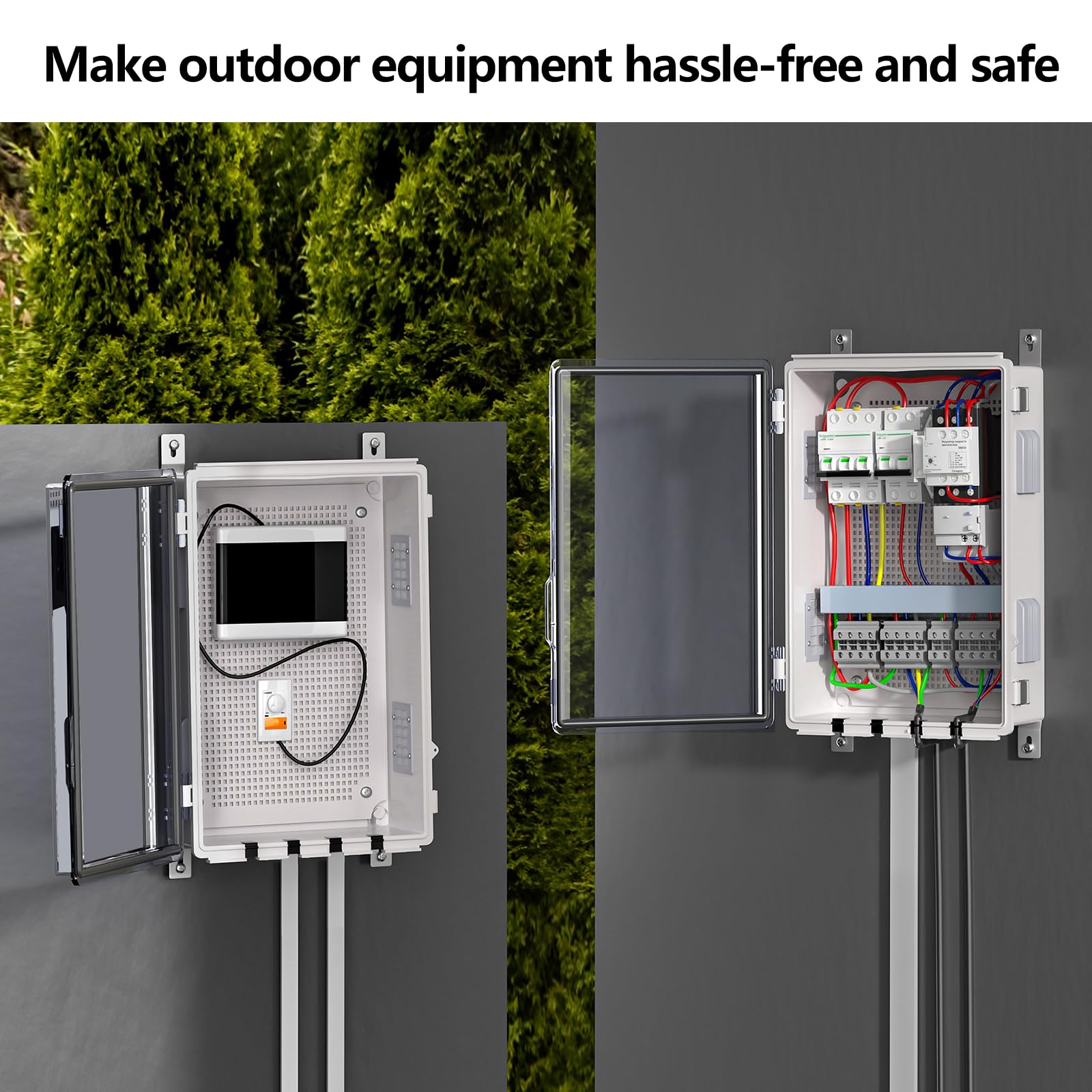 - 【Easy to Install】The junction box has a mounting plate with pre-drilled holes, which can be easily installed on the wall or ceiling. The hinged cover design makes it easy to open and close, providing convenient access to the internal components.
