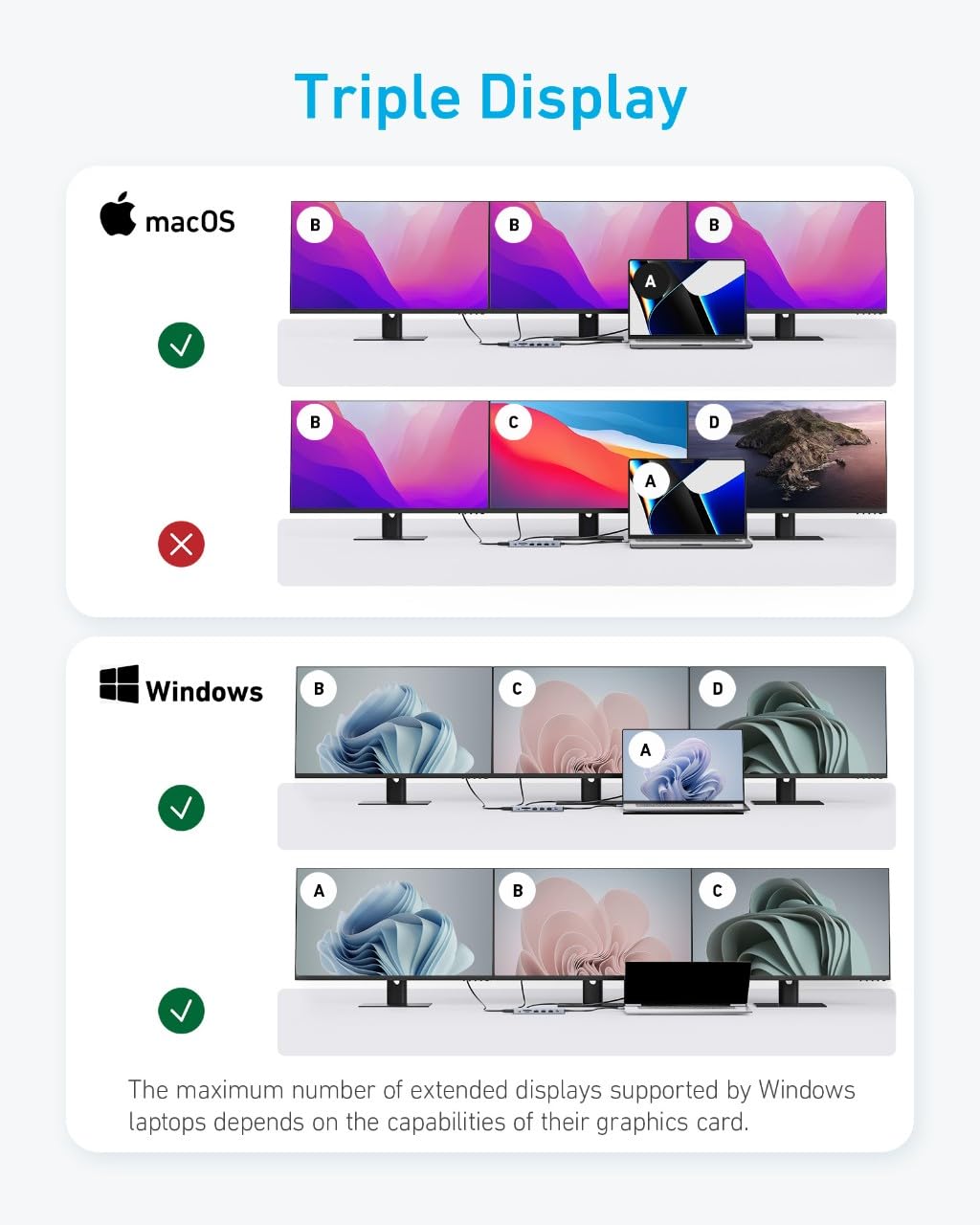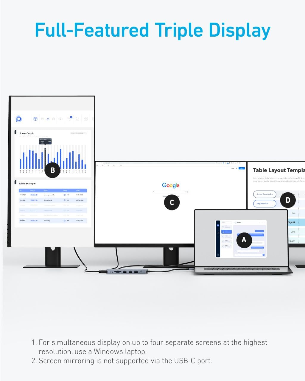 Anker 14 in 1 USB C Docking Station,USB C Hub Triple Display, With 4K HDMI, 1080p VGA, 100W Power Delivery, 5Gbps USB-A/C Data Ports for MacBook, Dell XPS, HP Laptops and more