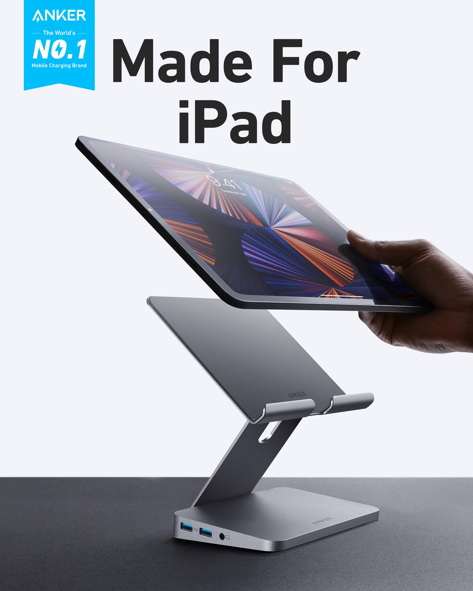Anker , 551 USB-C Hub (8-in-1), with Foldable Tablet Stand, Dock, 4K HDMI, 2 USB-A Data Ports, for iPad Pro 5th Gen / iPad Air 5th Gen/iPad Mini 6th and Later (Silver)