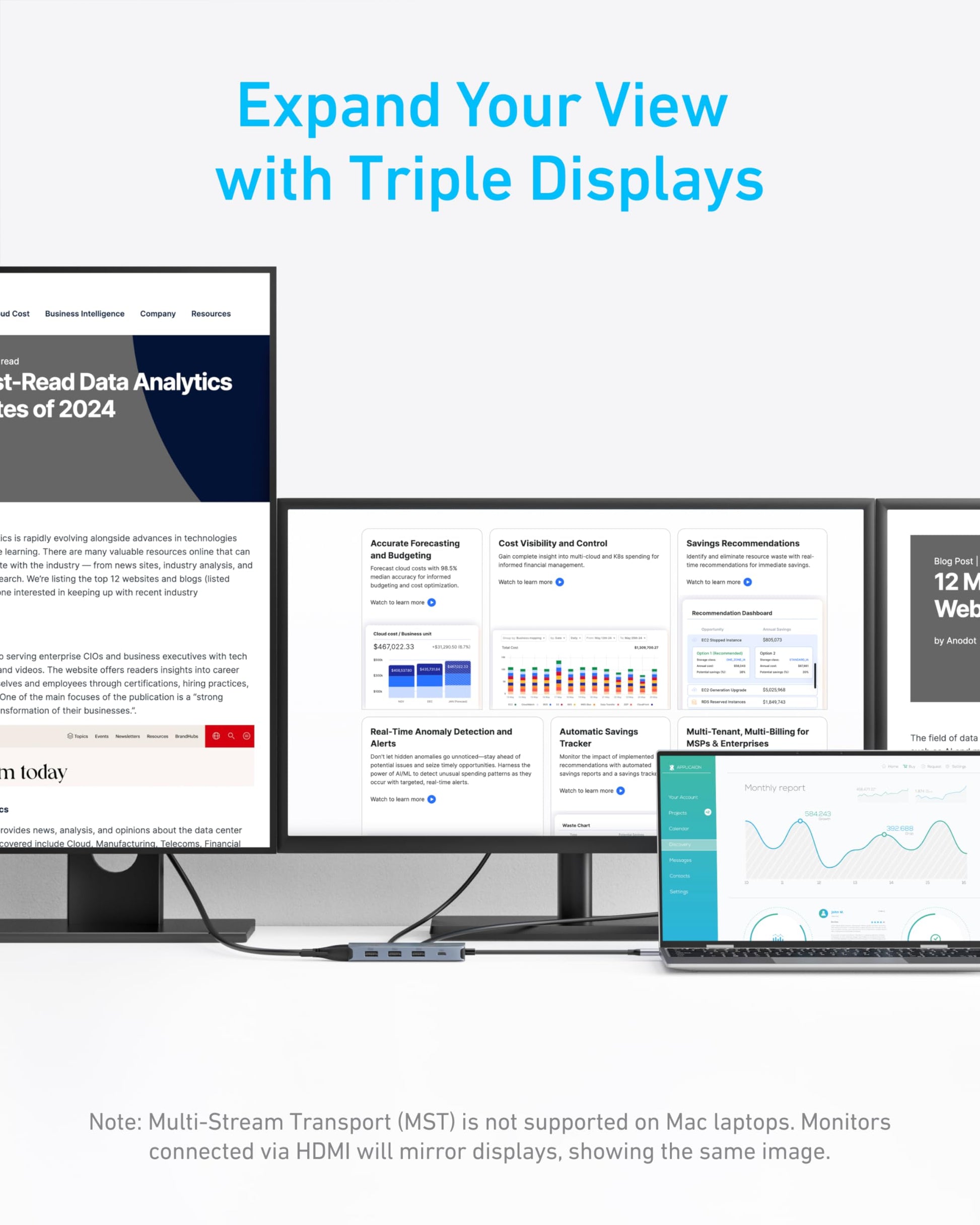 - Triple Display: Boost your productivity with the capability to connect to three monitors, with one HDMI port supporting 4K@60Hz for exceptional clarity and detail. (Note: macOS only supports Mirror mode, displaying the same content across all external monitors.)