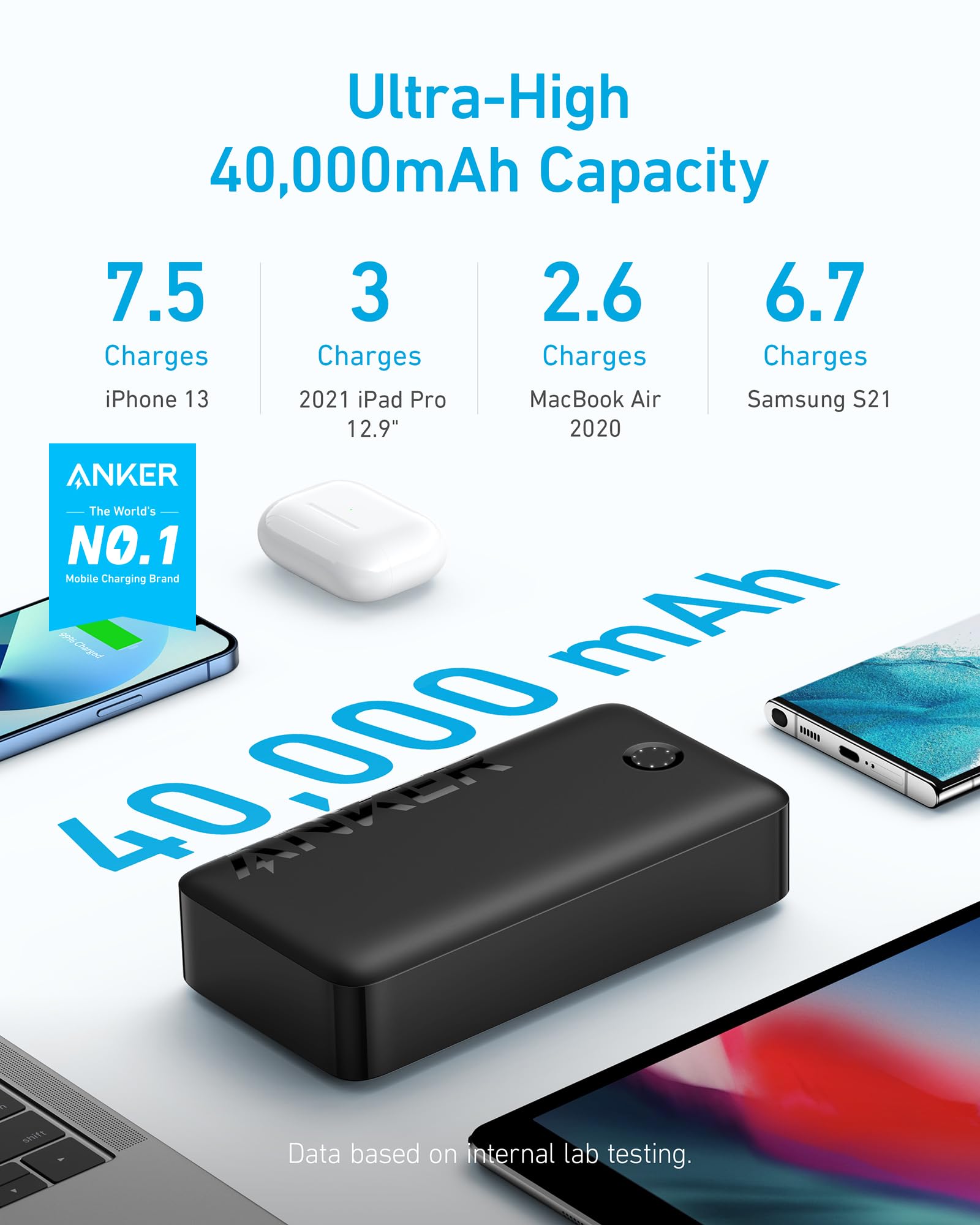 Anker Portable Charger, Power Bank, 40,000mAh 30W Battery Pack with USB-C High-Speed Charging, for MacBook, iPhone iPhone 15/15 Plus/15 Pro/15 Pro Max, iPhone14/13/12 Series, Samsung Galaxy, iPad