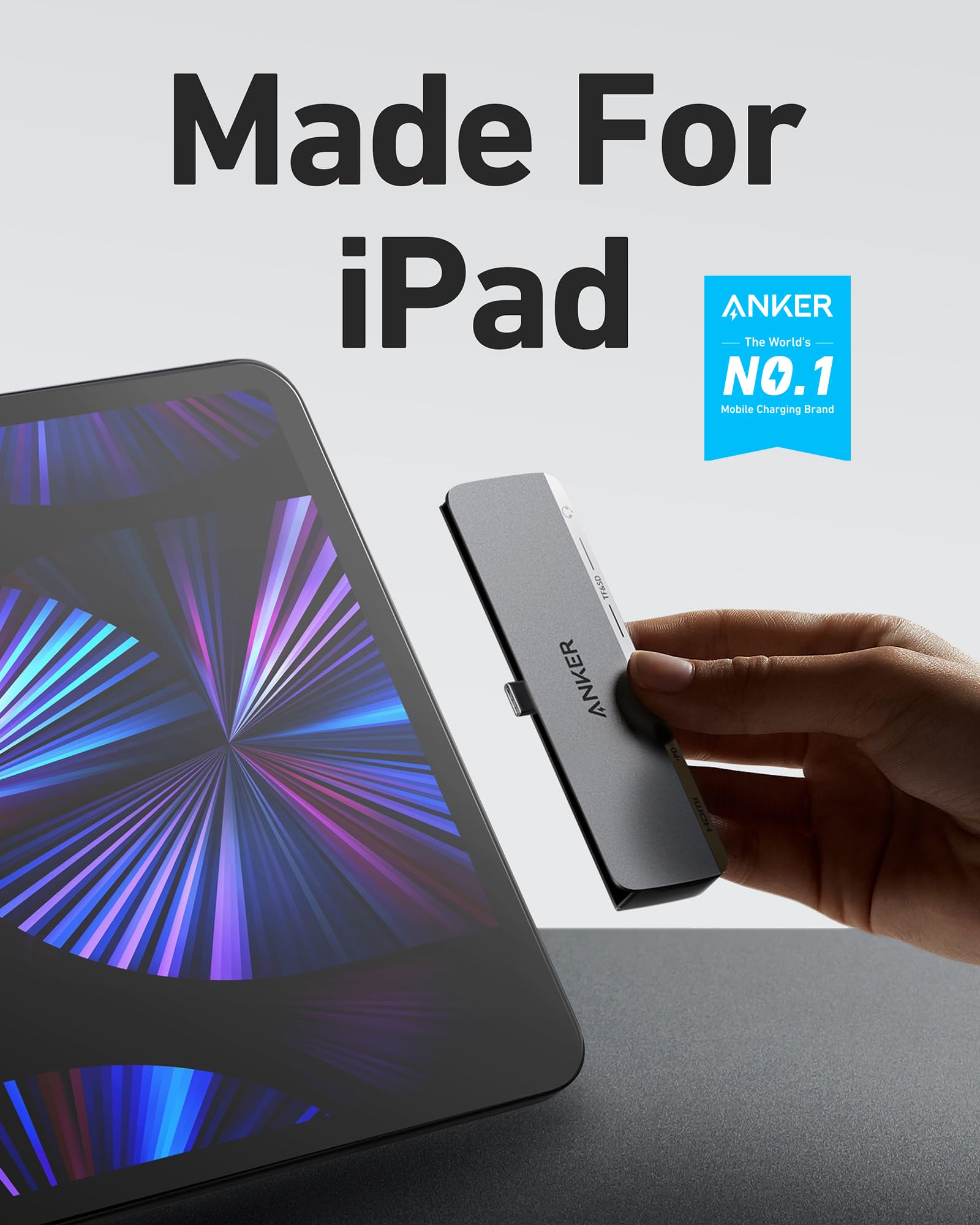 Anker USB C Hub for USB-C iPad, 541 USB-C Hub (6-in-1) with 4K HDMI Port, Multi-Function USB-C Port, SD and microSD Card Slots, for iPad Pro 5th Gen / iPad Air 5th Gen / iPad Mini 6th and Later (Gray)