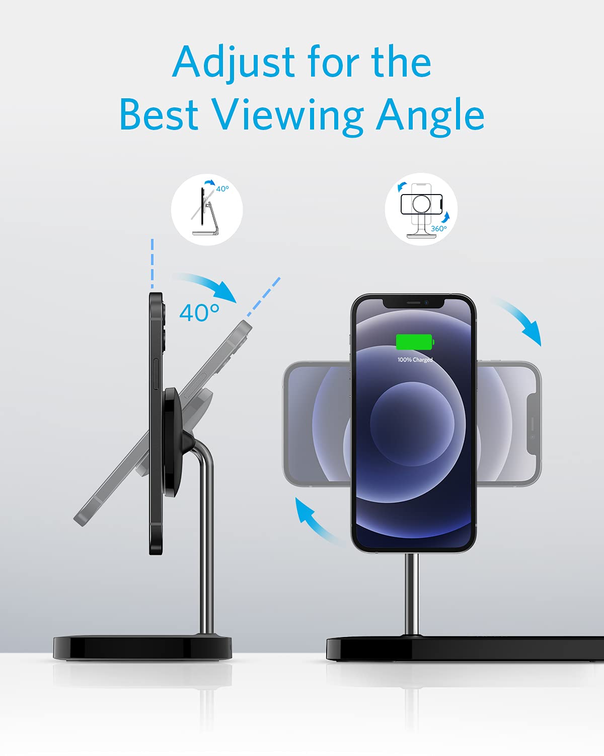 - The Perfect View: Charge vertically or horizontally, and adjust the viewing angle up to 40° to keep tabs on incoming messages or catch up on your favorite videos.