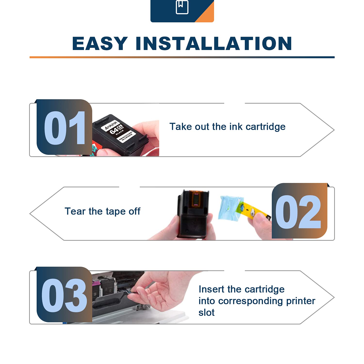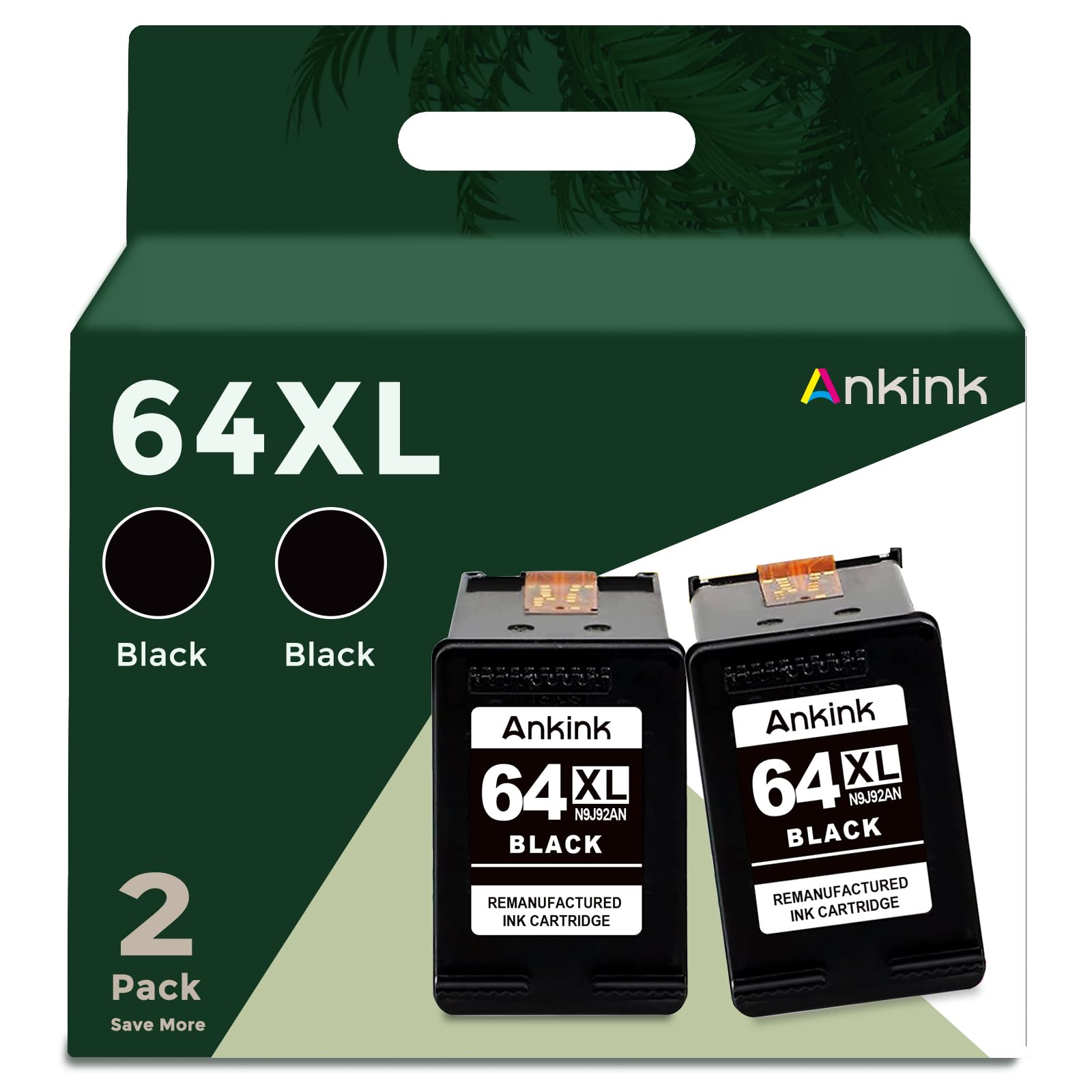 Ankink Remanufactured Ink Cartridge Replacement for HP 64XL (Black 2-Pack) 64 Ink XL hp64 hp64xl use with 7858 7855 7120 7155 7158 7164 6255 6252 6232 Envy Inspire 7955e Tango X Printer