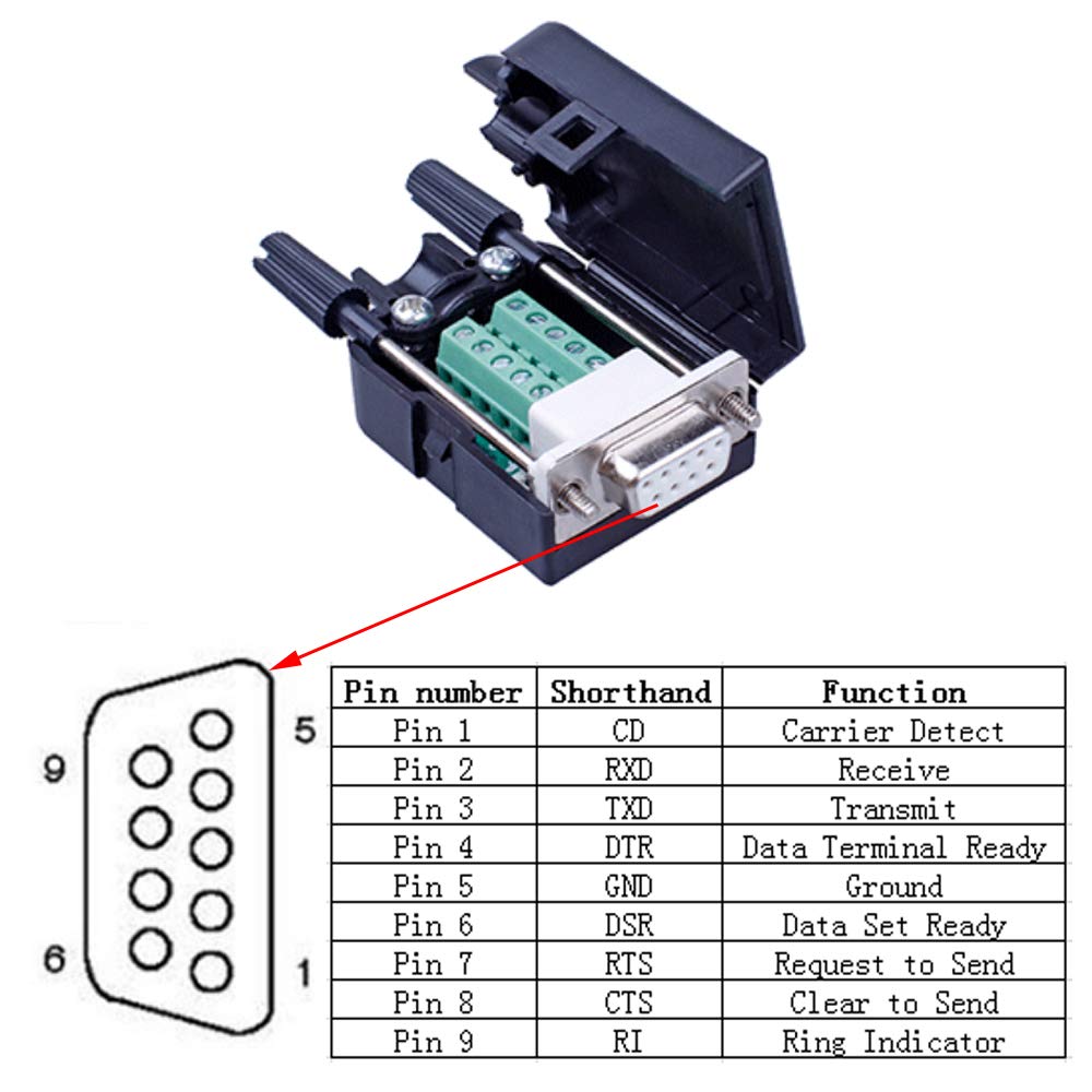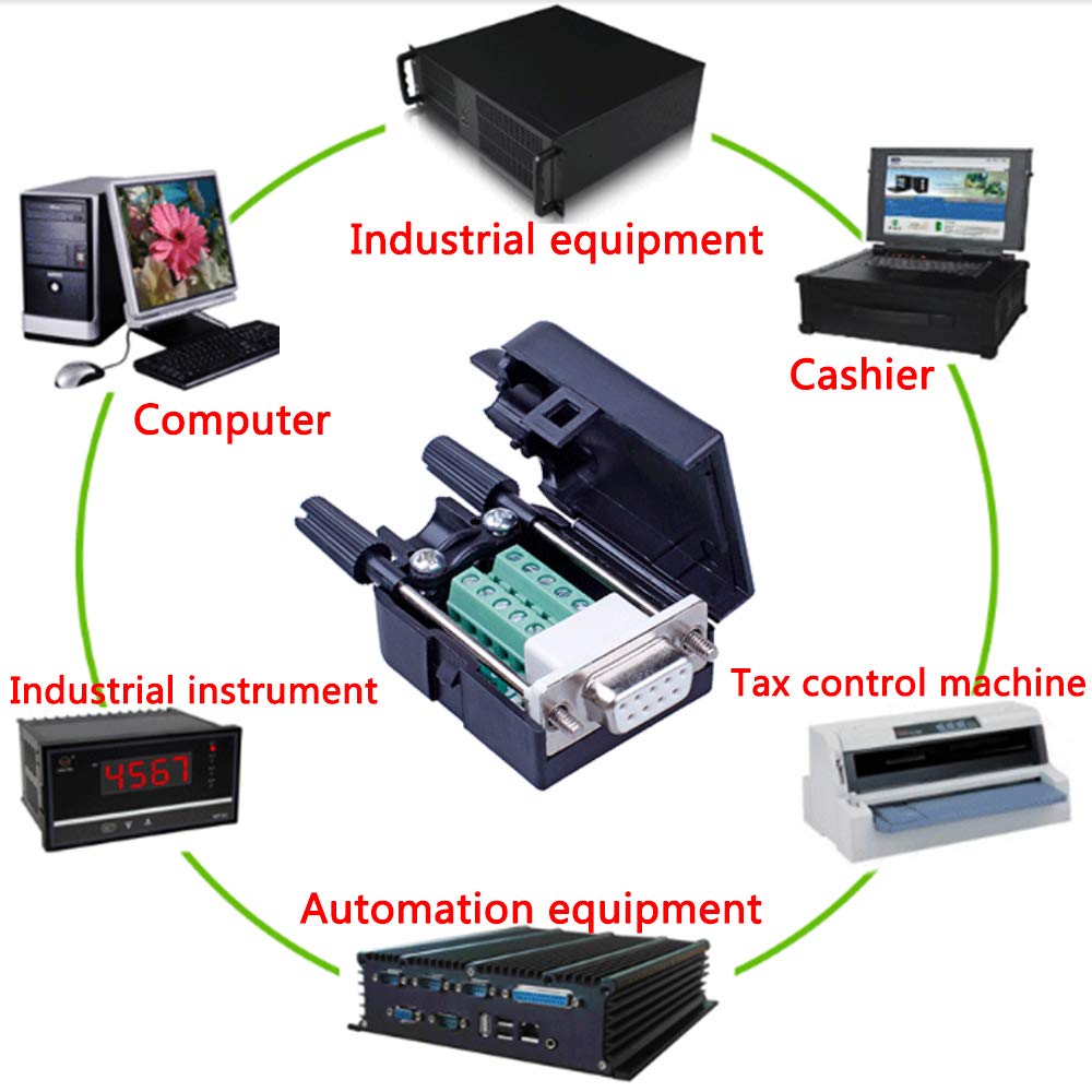 ANMBEST 10PCS DB9 Female Breakout Connector,DB9 Solderless RS232 D-SUB Serial to 9-pin Port Terminal Adapter Connector Breakout Board with Case Long Bolts Tail Pipe