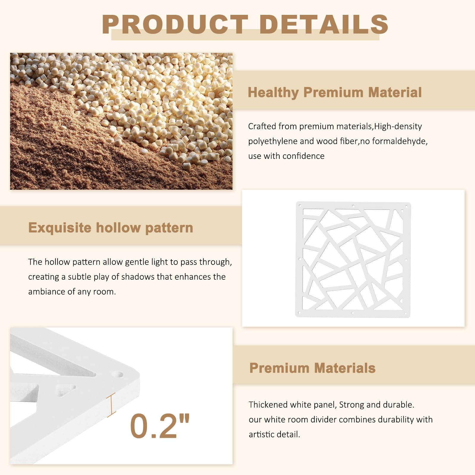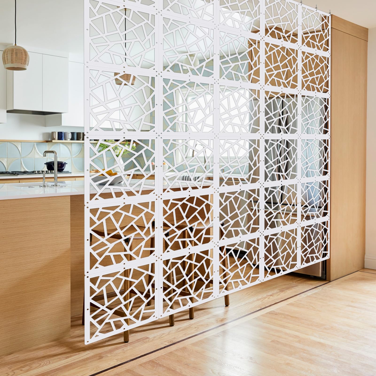 Details: ANMINY 24 PCS Hanging Room Divider Decorative Thick Panels Floral Carving Wall Screen Hollow Out Design for Bedroom Living Dining Room Kitchen Office Restaurant Home Decor - White Geometric Patterns